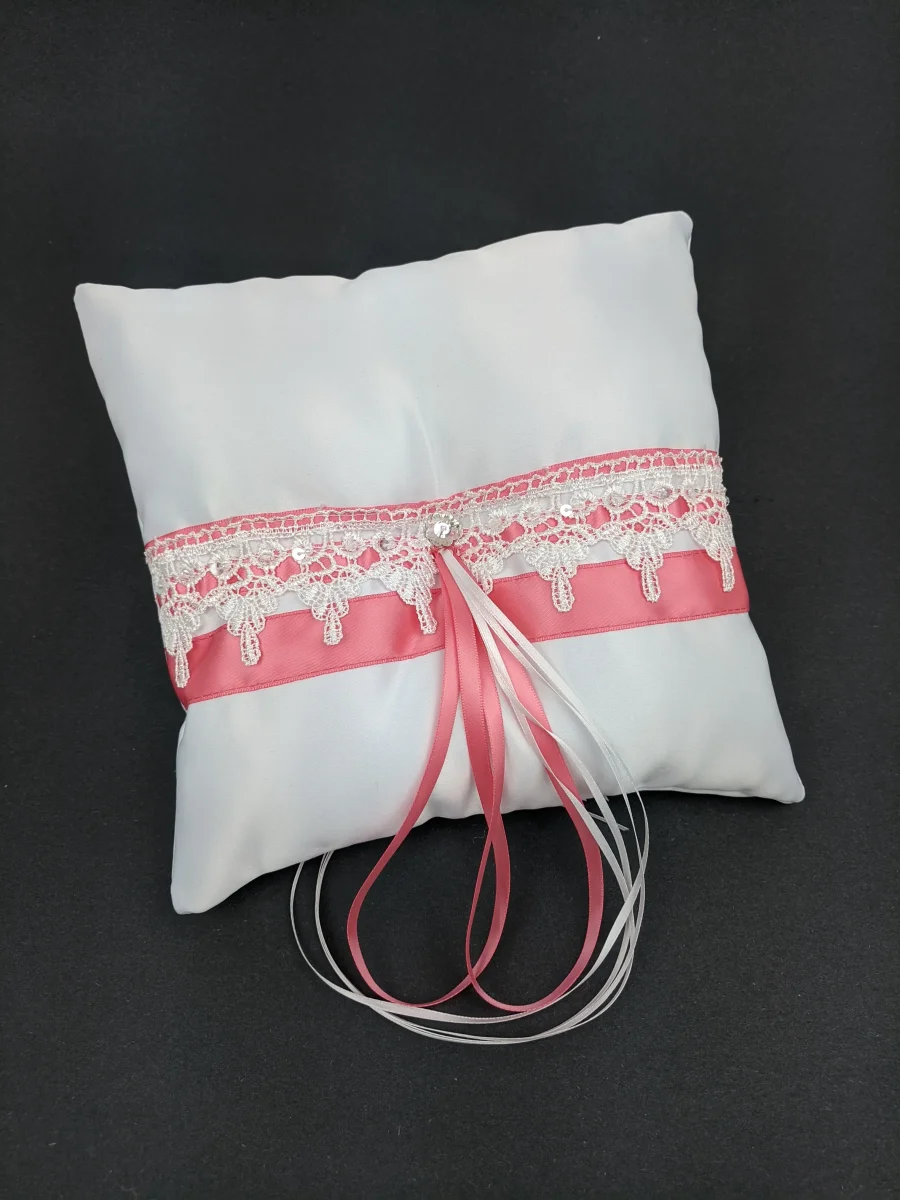 009A Coussin d’alliances en dentelle blanche avec accent royal