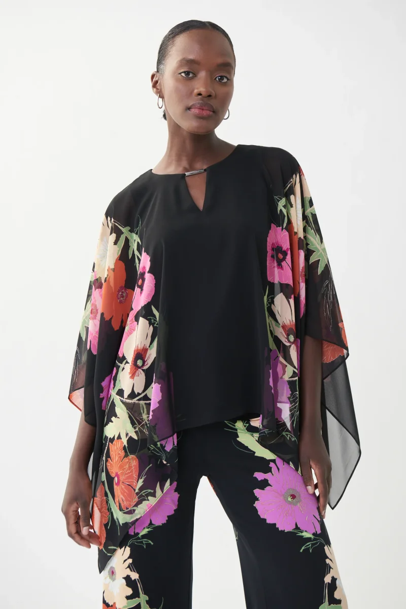 Haut noir fleuris idéal pour les mères de mariés ou encore si vous êtes invité à un mariage prochainement. Nous suggérons le pantalon # De la collection Joseph Ribkoff Signature, ce modèle prêt à porter sera parfait pour plusieurs occasions.