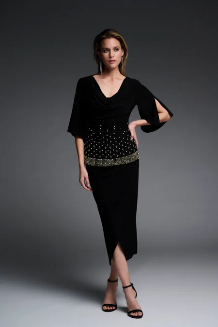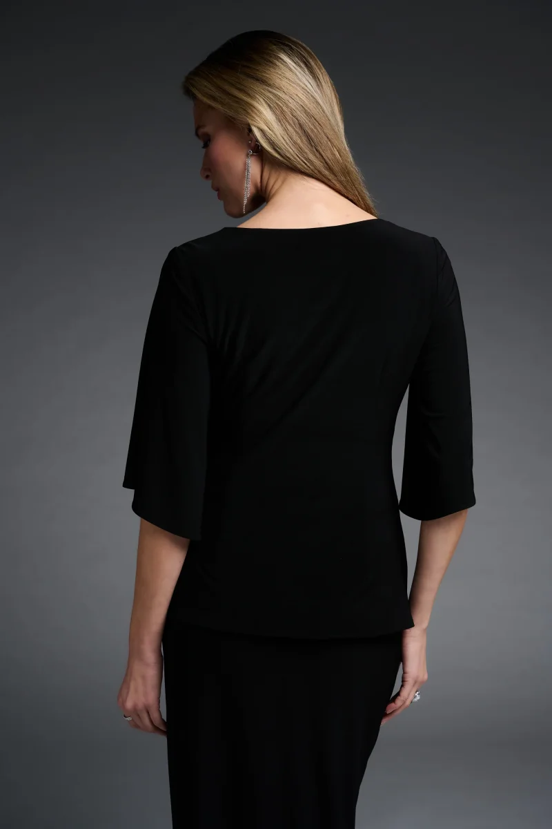 Haut a encolure en V Manche ample Détail de perles et de pierres au bas 96 Polyester 4 Élasthanne