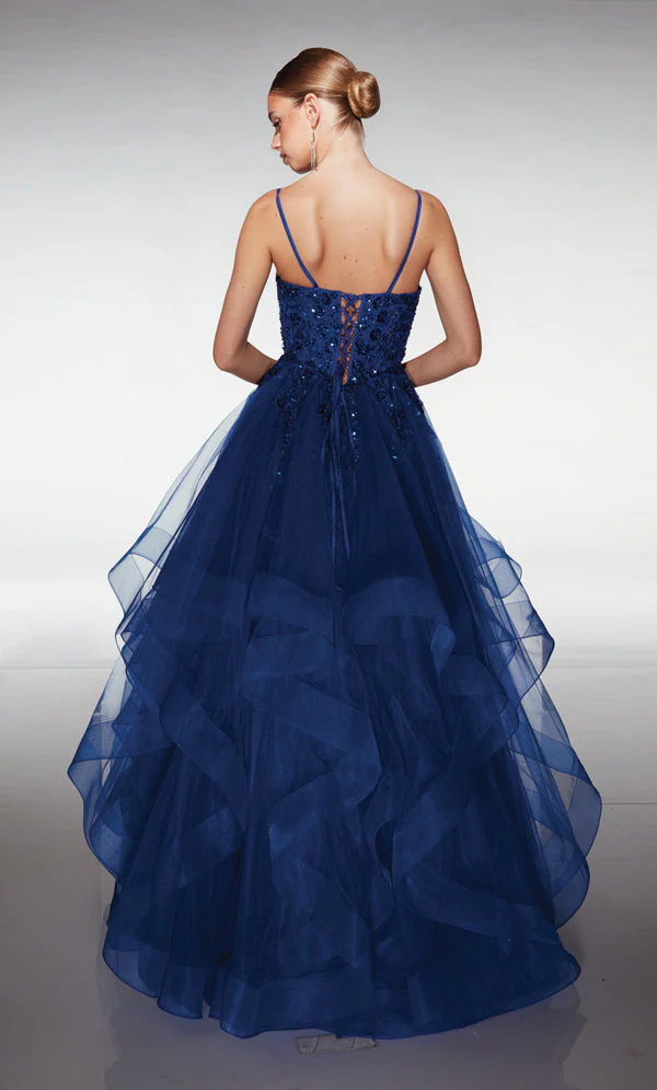 Robe de bal longue au charme féerique, ornée d’un corsage délicatement brodé de sequins qui scintillent à chaque mouvement.La jupe volumineuse en tulle superposé crée un effet vaporeux et spectaculaire, parfaite pour tournoyer sur la piste de danse et faire une entrée mémorable.Un choix idéal pour un bal, une soirée formelle ou tout événement où tu veux te sentir comme une véritable princesse.