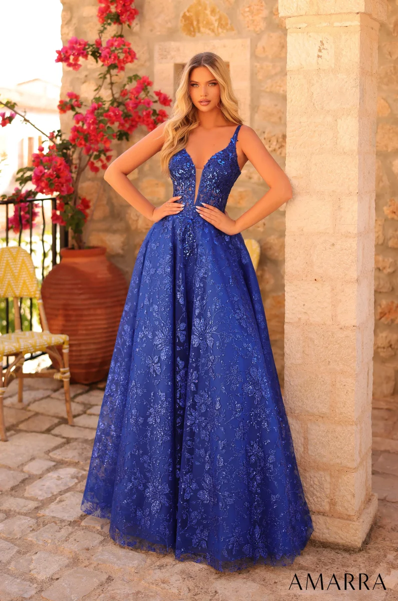 Cette somptueuse robe de bal de coupe A-line est sublimée par de délicates broderies florales en dentelle et des touches de sequins scintillants, lui conférant un éclat féerique. Son décolleté plongeant apporte une note audacieuse, tandis que le corset transparent structure la silhouette avec élégance. Le laçage au dos assure un ajustement parfait et personnalisé. Sa jupe longue et fluide accompagne chacun de vos pas avec grâce. Idéale pour les grandes occasions.
