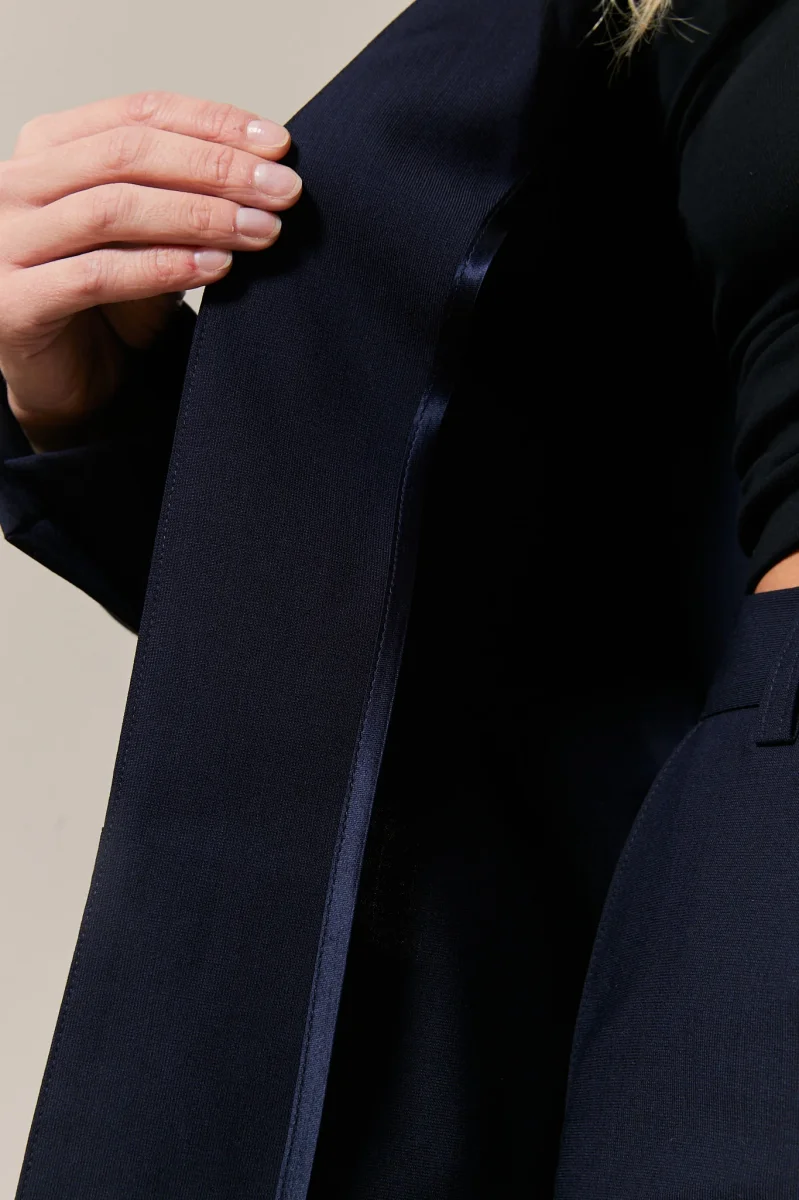 Notre Blazer Andréa en bleu profond est la définition même du professionnalisme avec une touche de modernité. Conçu pour les femmes d’affaires, ce blazer est taillé dans un tissu de qualité supérieure qui promet une silhouette nette et une présence imposante. La couleur bleu nuit évoque une élégance intemporelle, tandis que la coupe souligne le professionnalisme avec style.