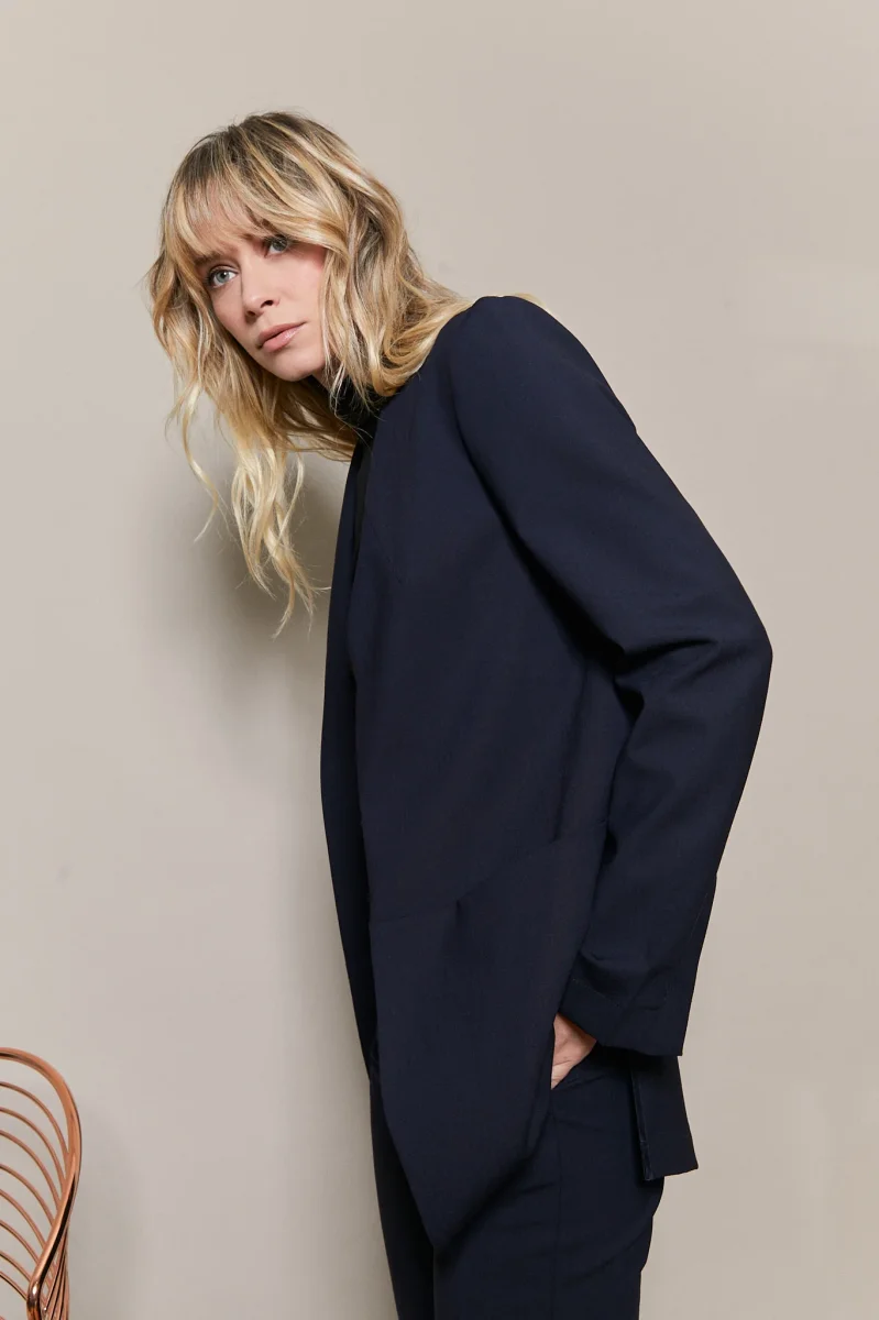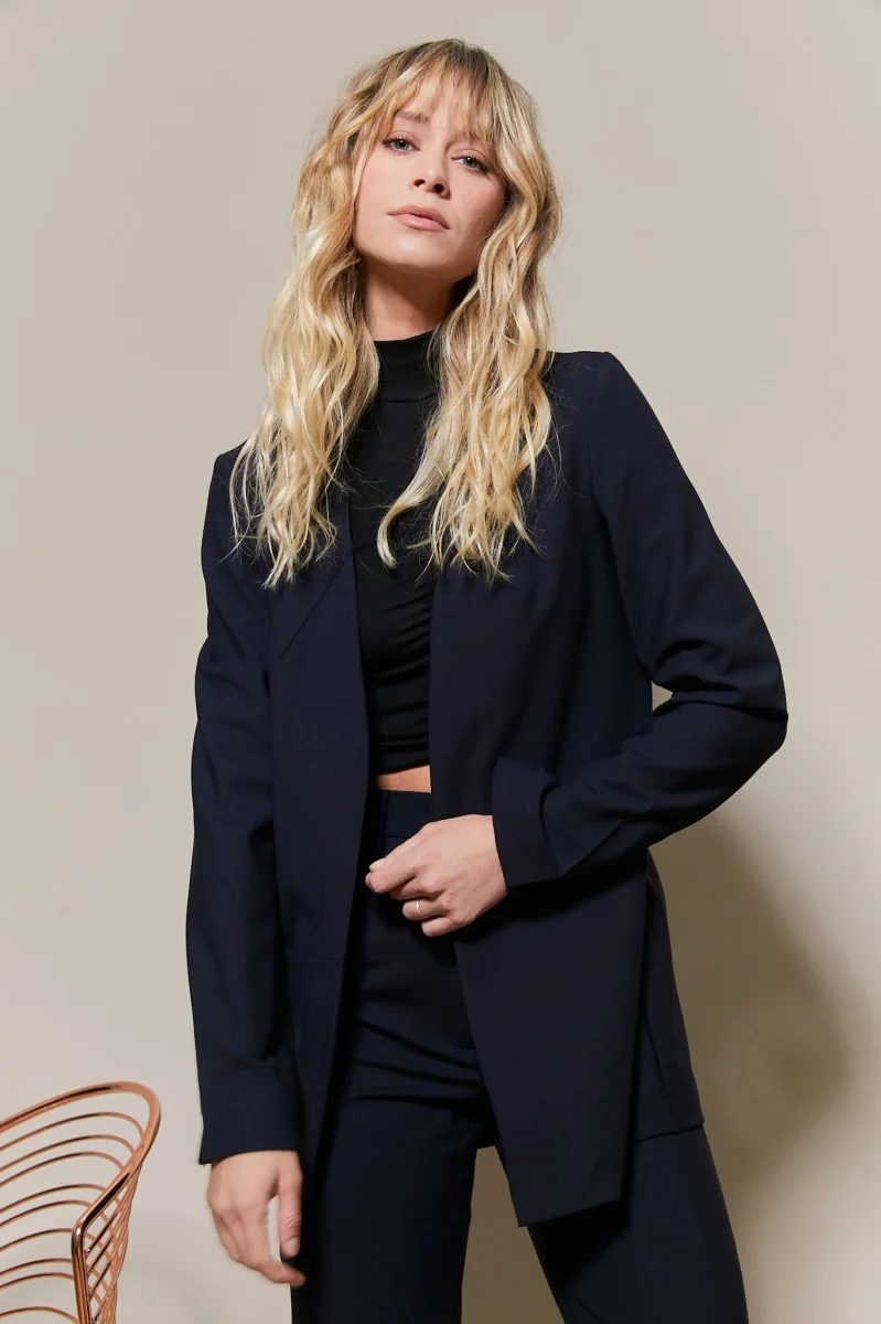 Cette veste Andréa est dotée d’une coupe classique et sans col qui s’adapte à tous les styles.