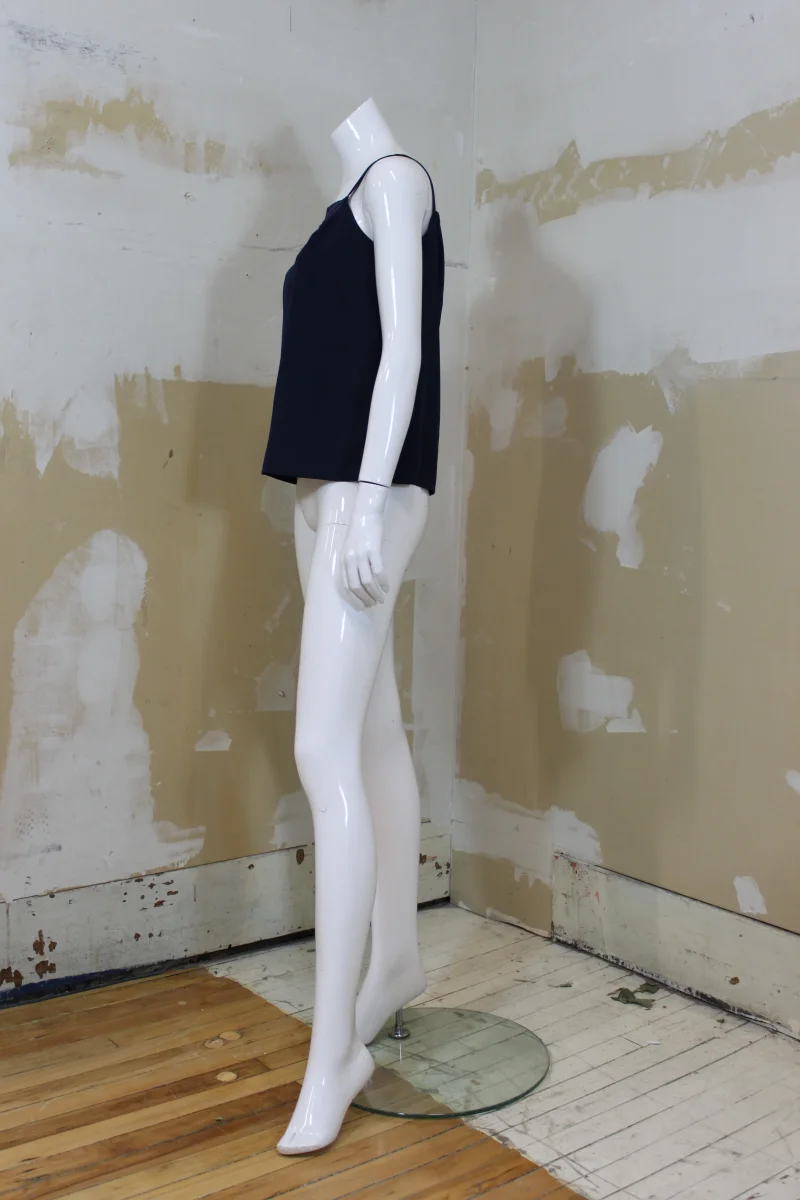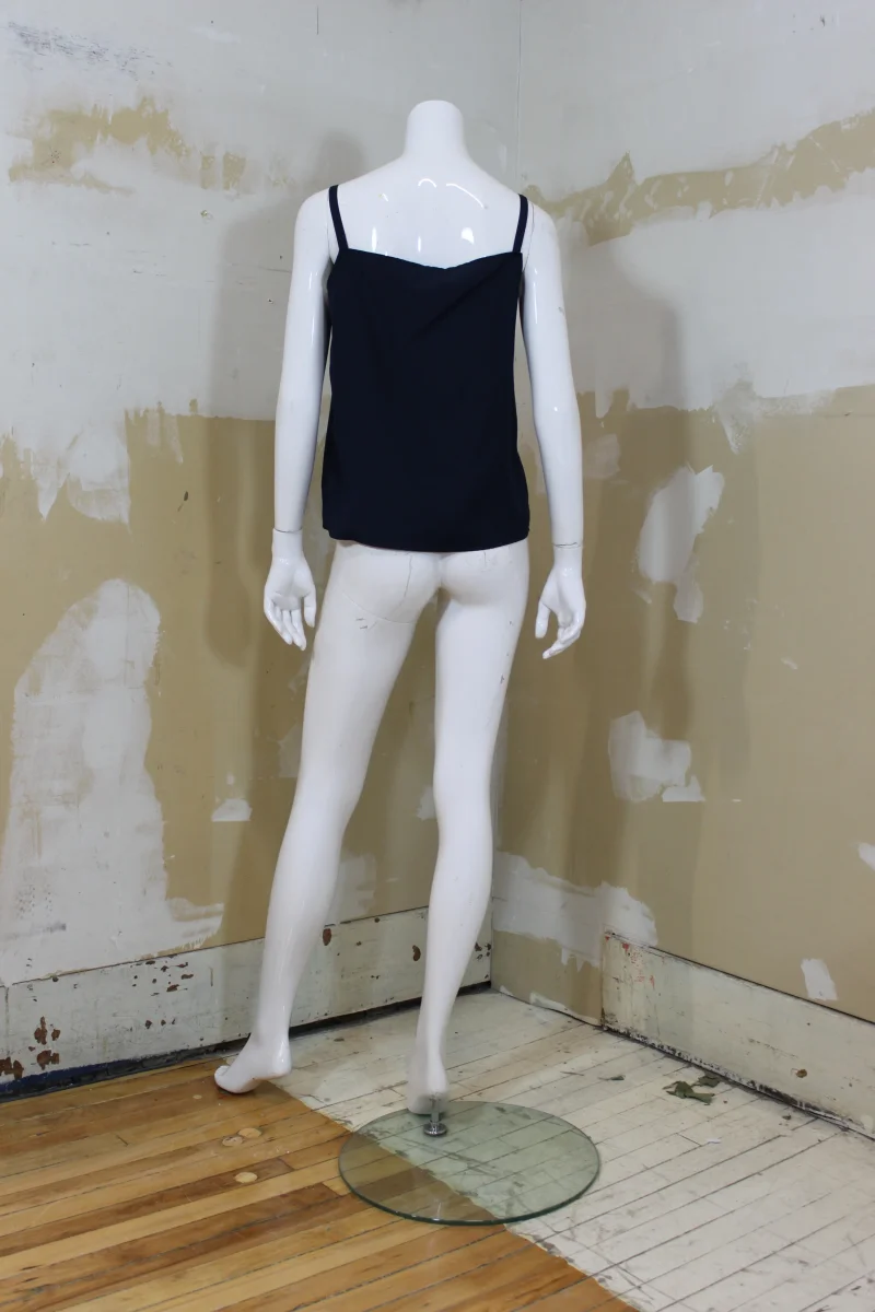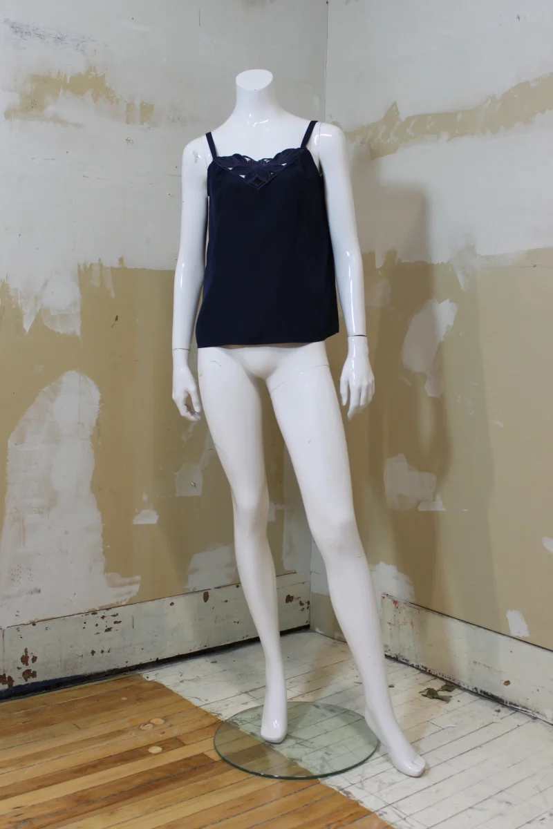 Camisole déshabillée en satin marine, vintage. Encolure carrée avec empiècement fleur brodée ajourée. Bretelles fine. Fit S/M Poitrine 36 po Taille 39 po Longueur 17,5 po N’a pas d’étiquette / probablement polyester État vintage 9/10