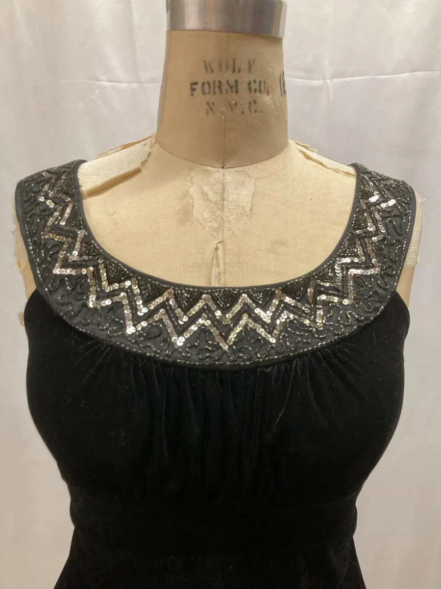 De la marque LE CHÂTEAU, vintage. Haut satin à paillettes dorée. Buste style Empire.