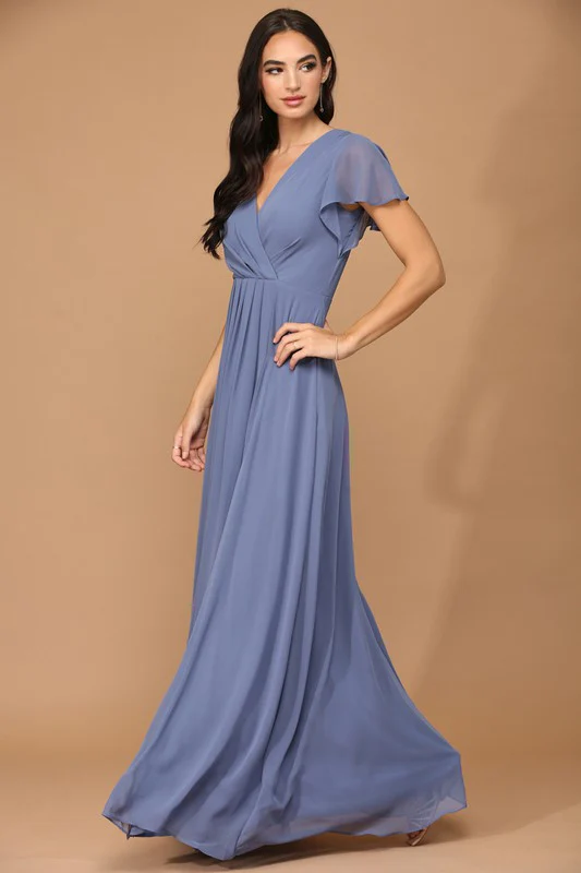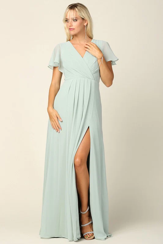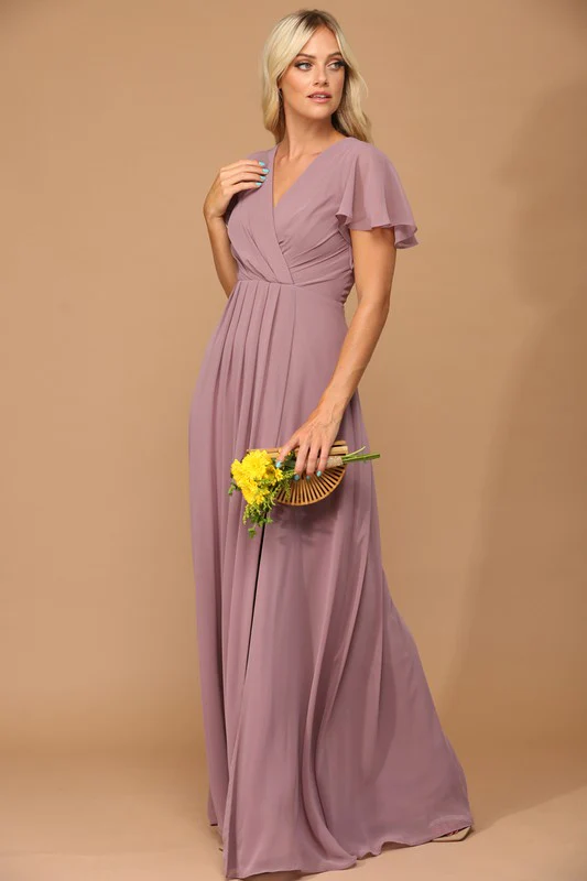 Chiffon Dress With Fluttery Short Sleeve.