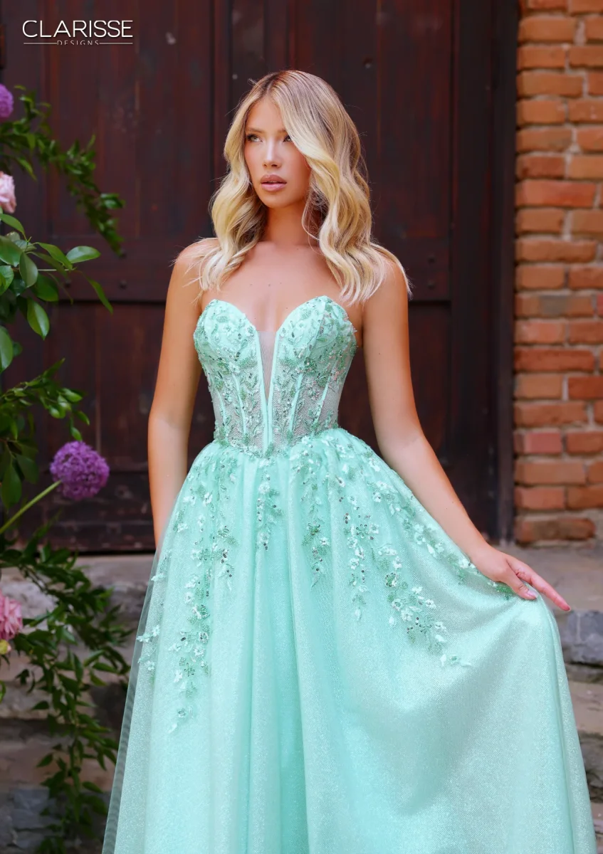 Cette éblouissante robe de bal en tulle pailleté, longueur au sol, présente un corsage semi-transparent façon corset orné de délicates broderies perlées, sublimé par un décolleté cœur plongeant et coquin, un dos réglable à lacets, ainsi que des poches pratiques.