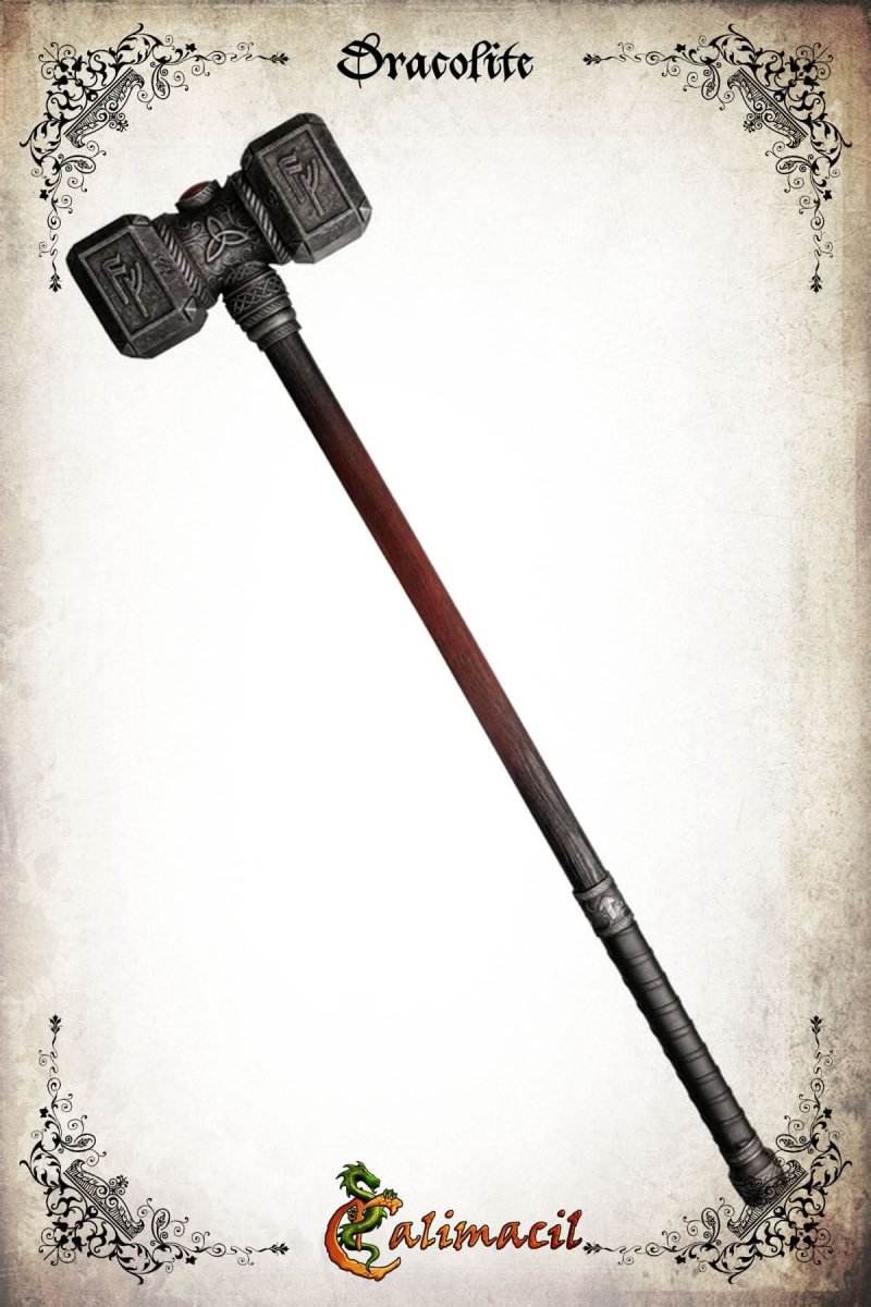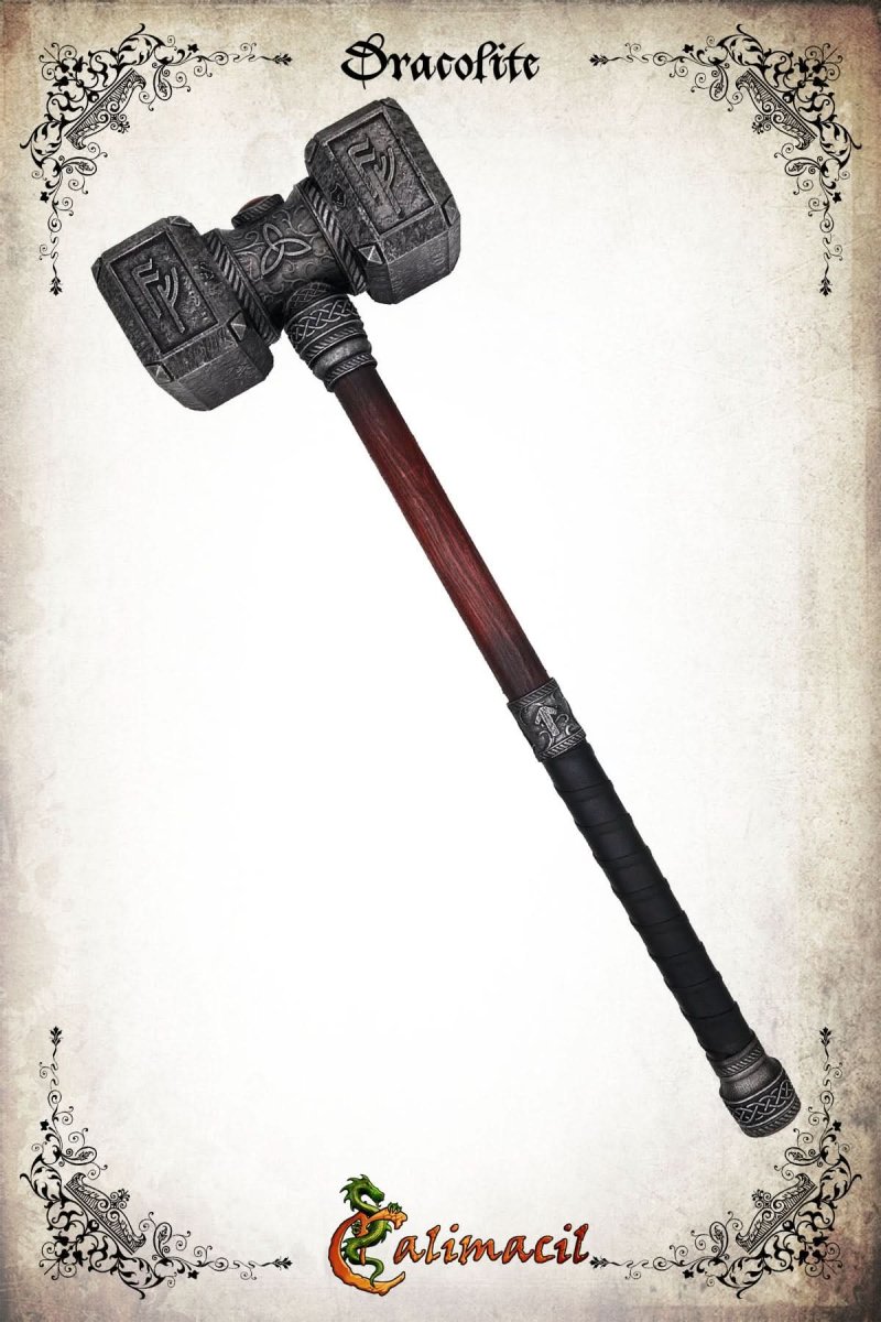 Le marteau Dorgen s’inscrit dans l’univers Seyrawyn, imaginé par Martial Grisé et Maryse Pepin. Conçu avec une mousse Calimacil de haute qualité, cet accessoire offre un réalisme saisissant tout en garantissant une sécurité optimale lors des combats de GN. Sa poignée simule le cuir véritable, agrémentée d’un pommeau en acier qui renforce son authenticité. Le manche en bois solide supporte les têtes aux finitions acier, creuses pour amortir les impacts et préserver l’intégrité des joueurs. Un gemme décoratif orne le sommet, accentuant l’aspect unique et prestigieux de cette arme. Sa conception en mousse Calimacil assure une robustesse durable, permettant de nombreuses années d’utilisation et d’aventures intenses.