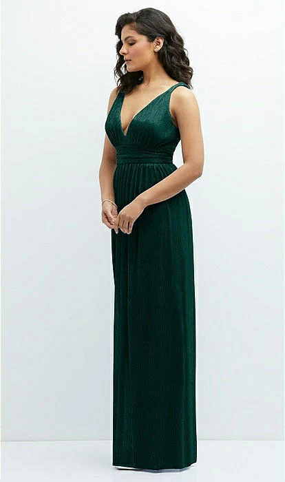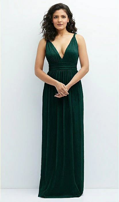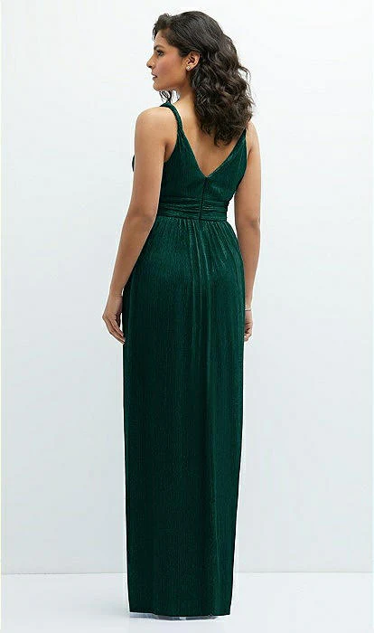 Attirez tous les regards avec cette somptueuse robe maxi qui dégage une énergie de déesse pure. Éblouissez avec ses plis métalliques scintillants et ses magnifiques bretelles torsadées. Plongez dans son séduisant décolleté plongeant en V et son dos en V coquet. Pendant que sa jupe droite et souple offre une sensation insouciante et féminine. Cette magnifique robe maxi plissée métallique est conçue pour faire une déclaration remarquable.