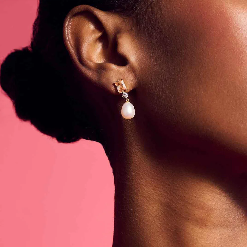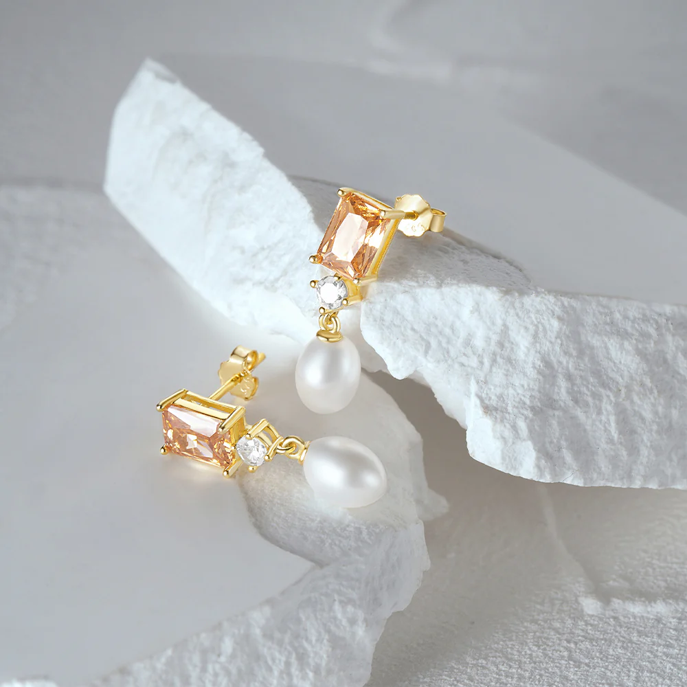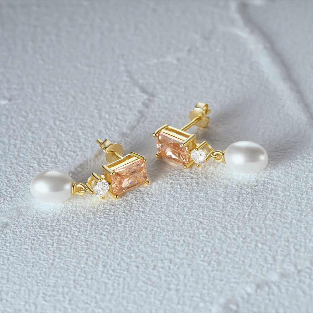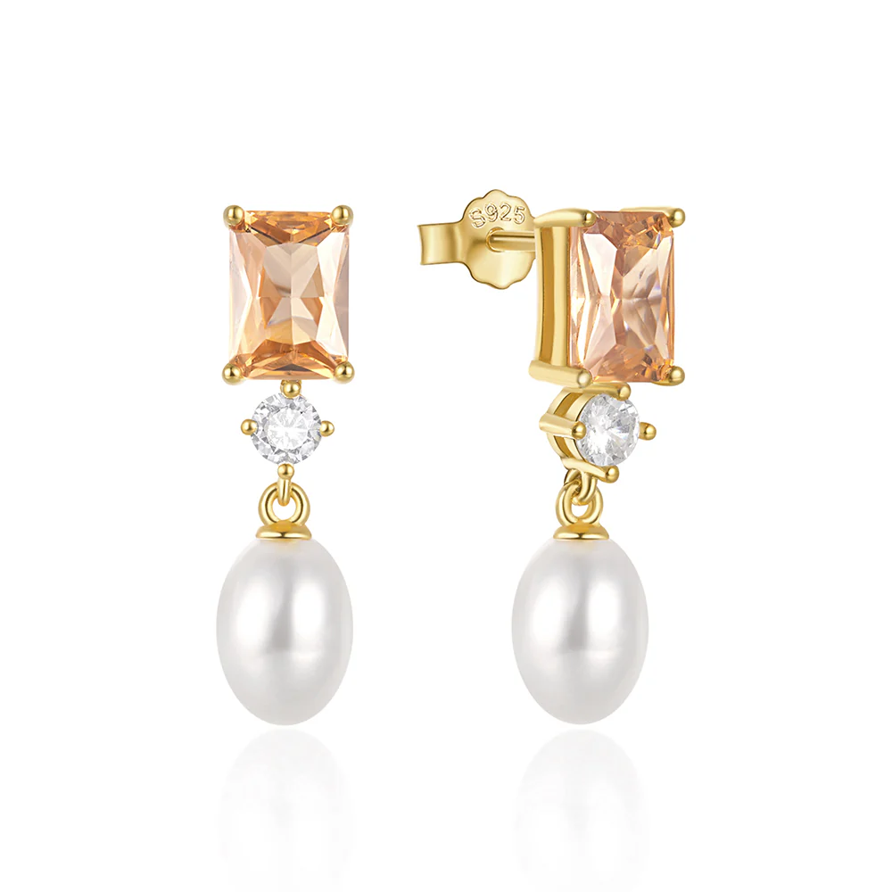 Boucles d’Oreilles Longues Perle et Pierre Or