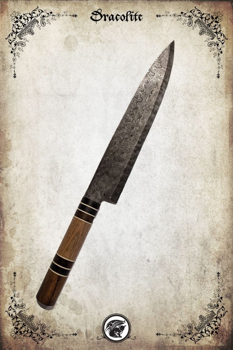 Le Grand Couteau à Sushi en acier de Damas est essentiel pour les passionnés de cuisine japonaise. Sa lame tranchante garantit des découpes précises et nettes, idéales pour préparer des sushis parfaits. Sa fabrication en acier de Damas assure durabilité et performance optimale.