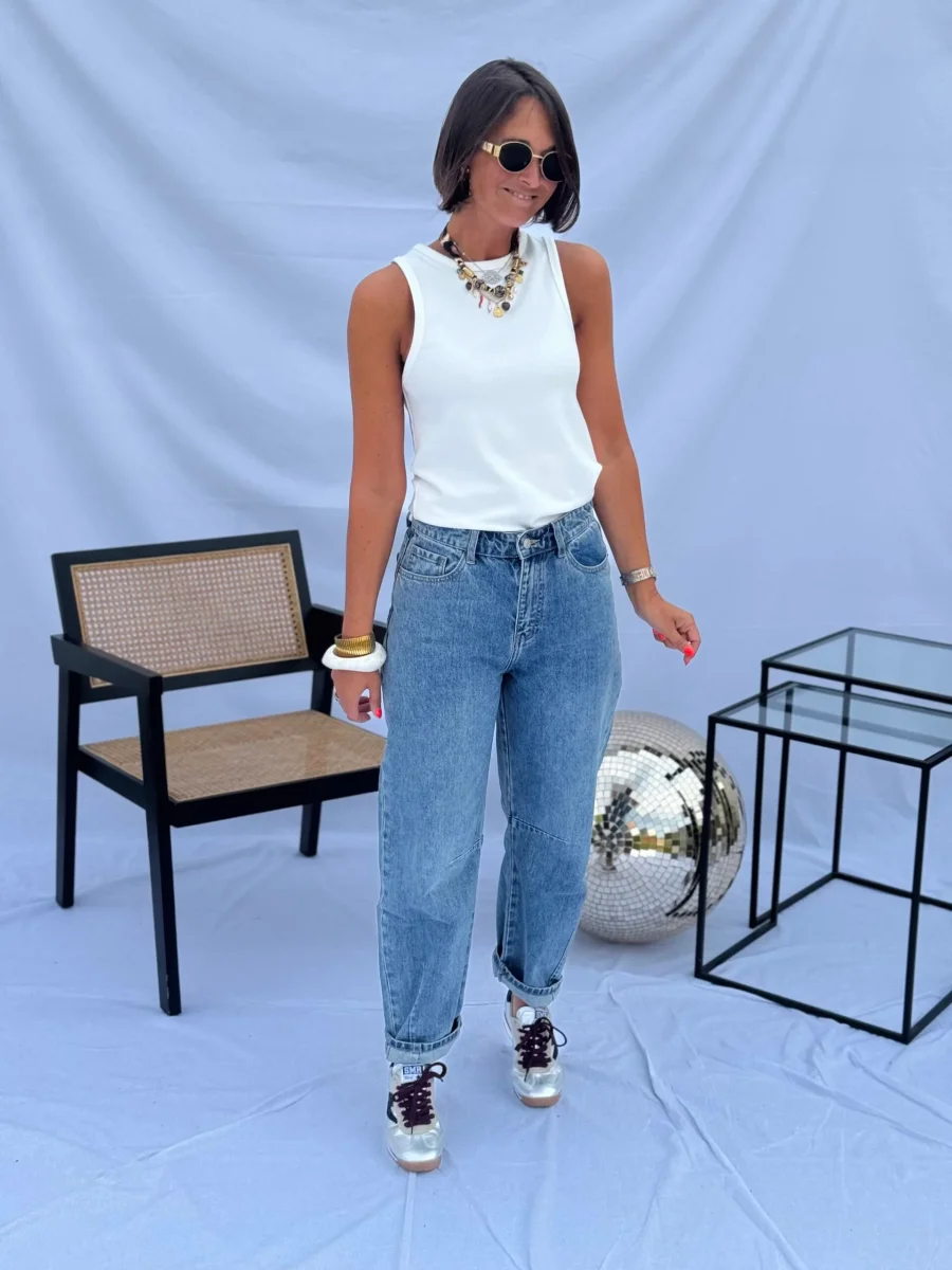 Le jeans taille normalement, il est conseillé de prendre sa taille habituelle.