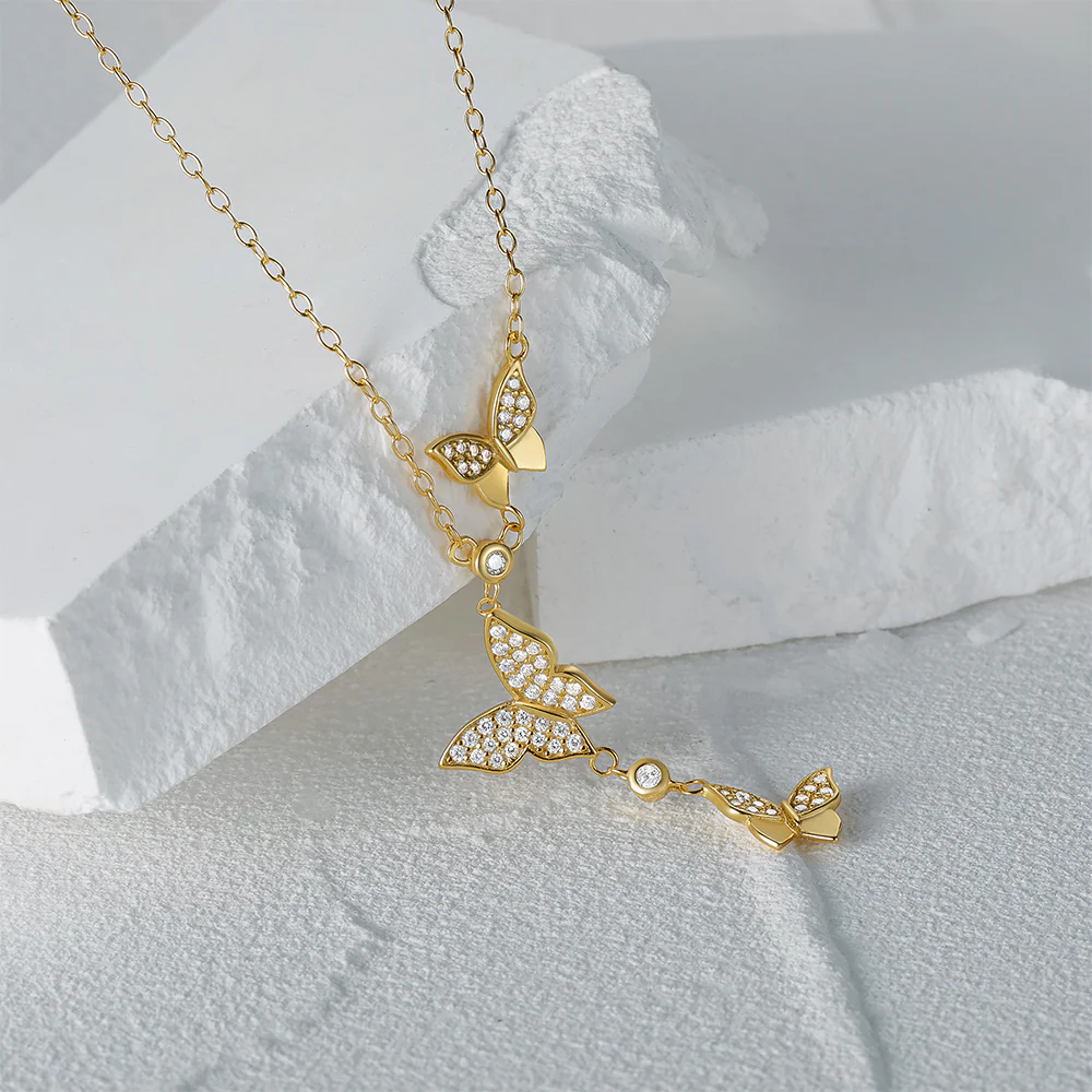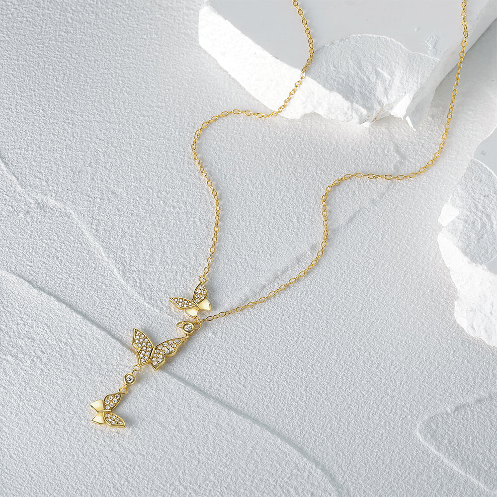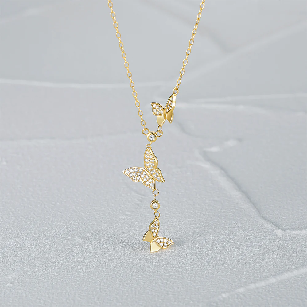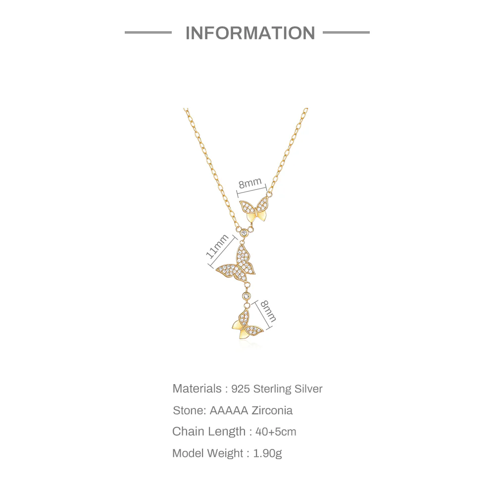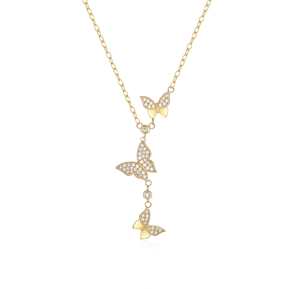 Fine long chain necklace with 3 butterflies.