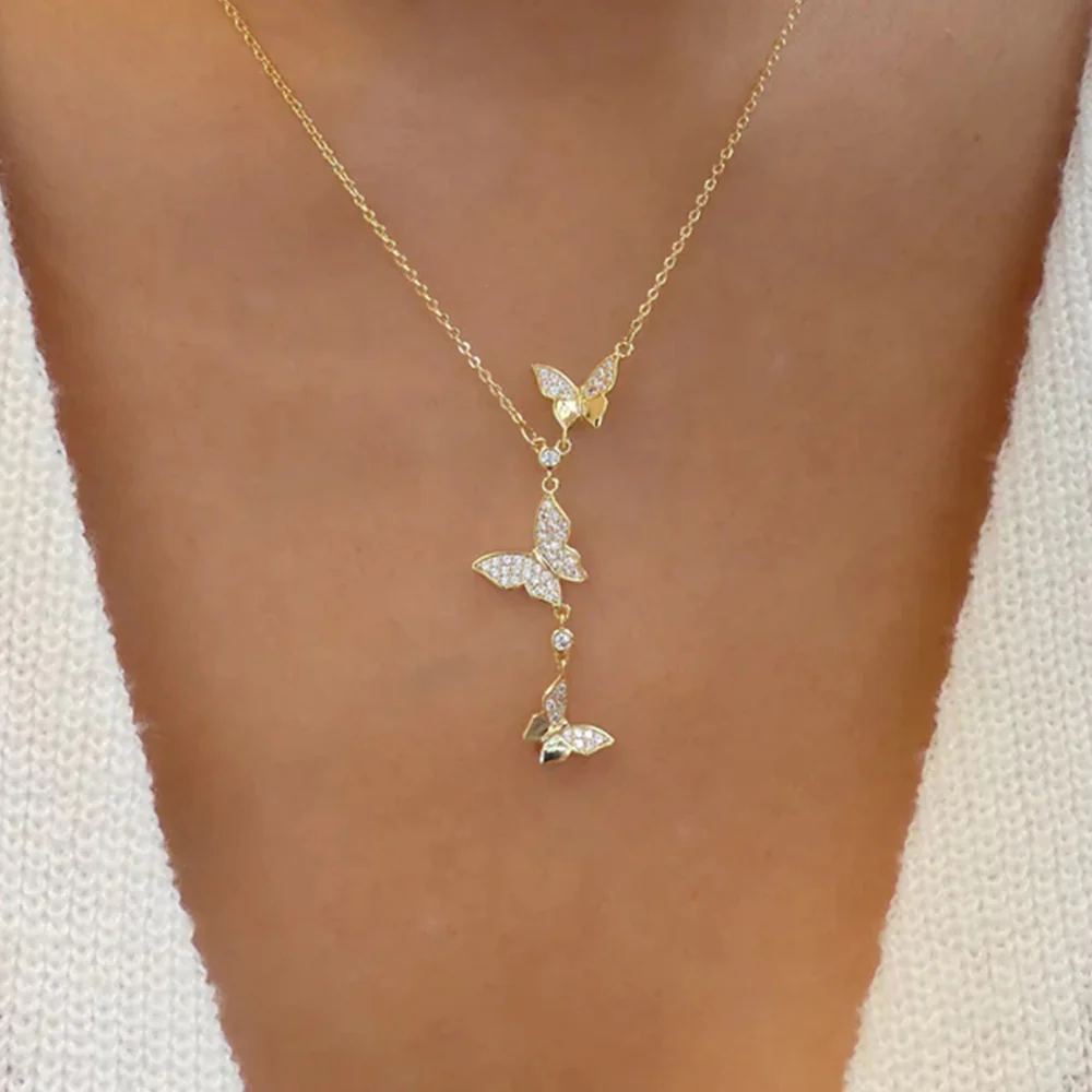 Collier fine chaîne longue à 3 papillons.