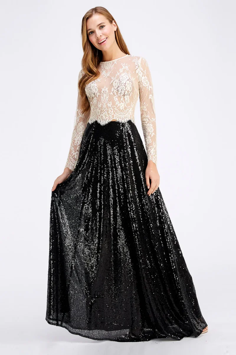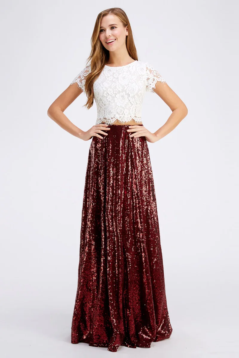 Ladies sequin stretch band waist slit maxi skirt (TOP IS NOT INCLUDED)