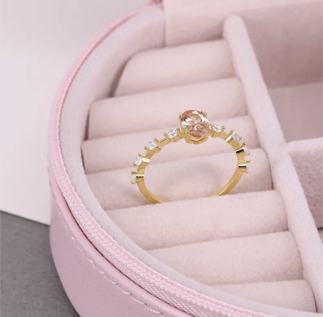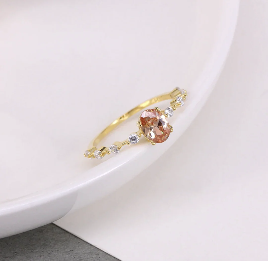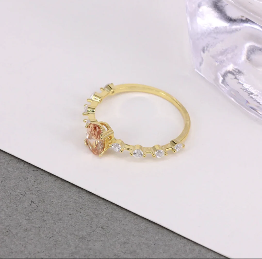 Bague Plaquée Or Avec Pierres de Zircon Teintée Pêche