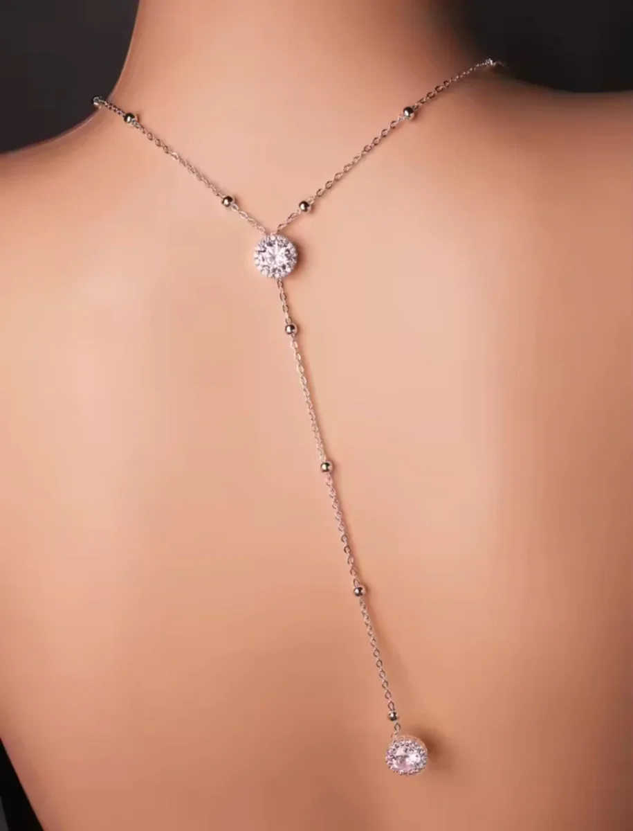 Back Necklace with Crystals – Subtle Elegance