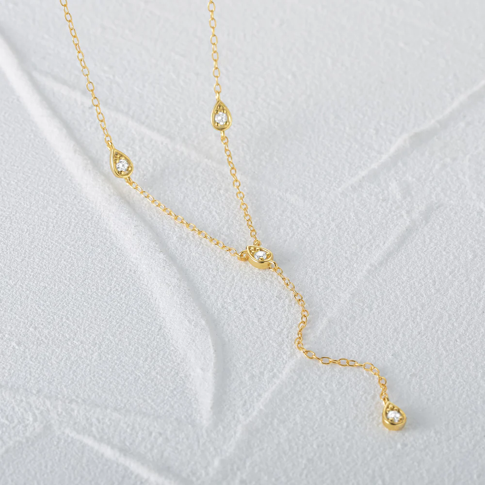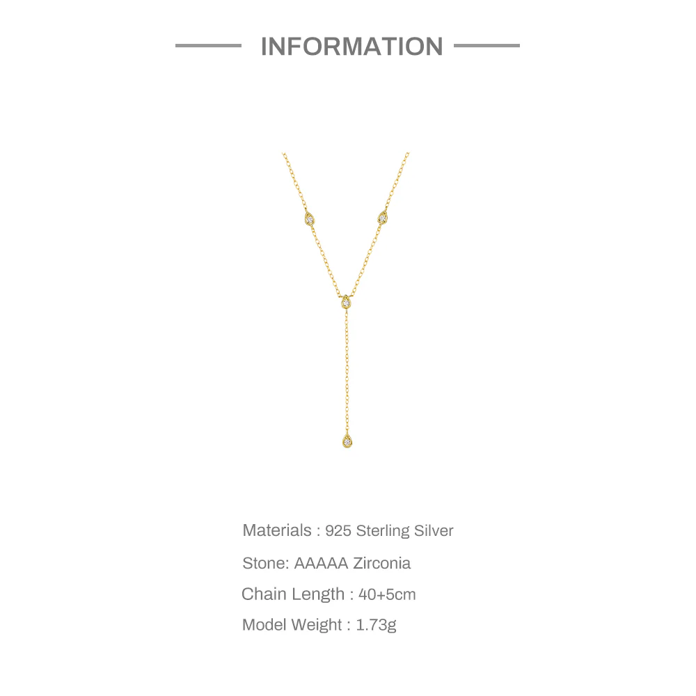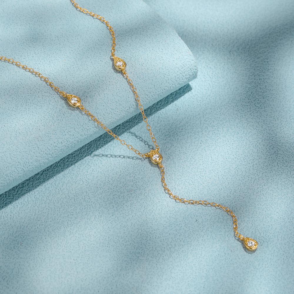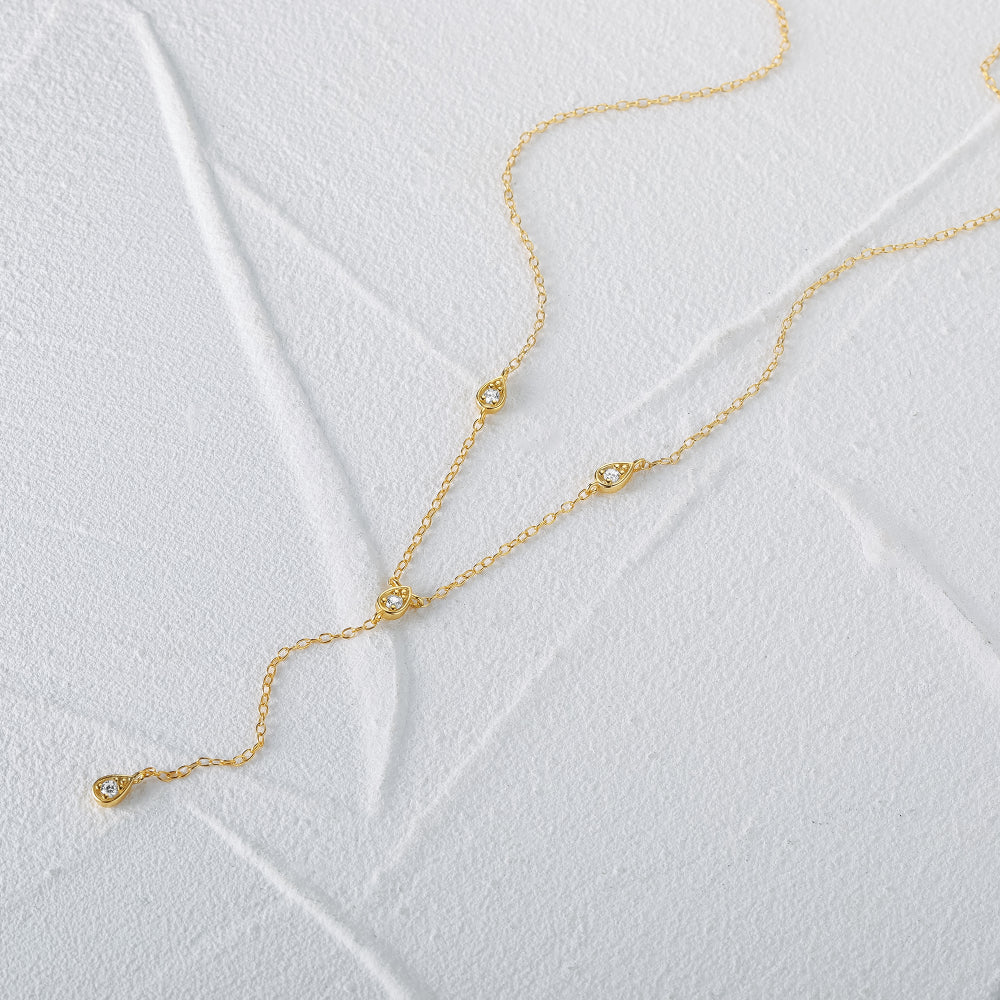 Thin long chain necklace with 4 zircons.