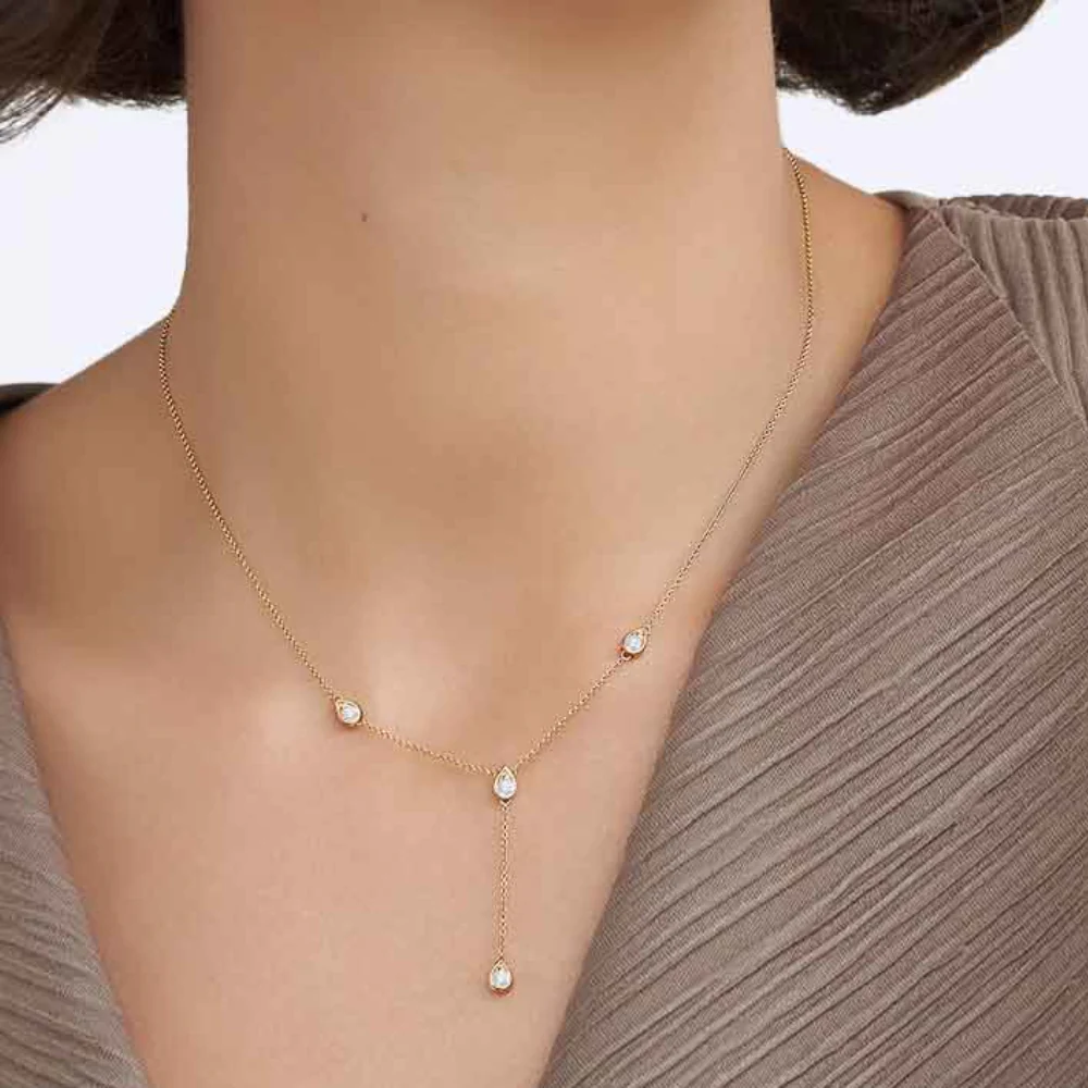 Collier en fine chaîne longue avec 4 zircons.