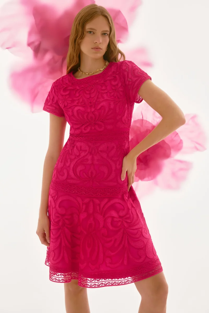 Portez cette robe raffinée et élégante avec dentelle lors d’occasions spéciales. Ses mancherons délicats, son encolure ras du cou flatteuse et les découpes sur le devant de la taille apportent une pointe de sophistication chic. Cet article fait partie de la collection Signature.