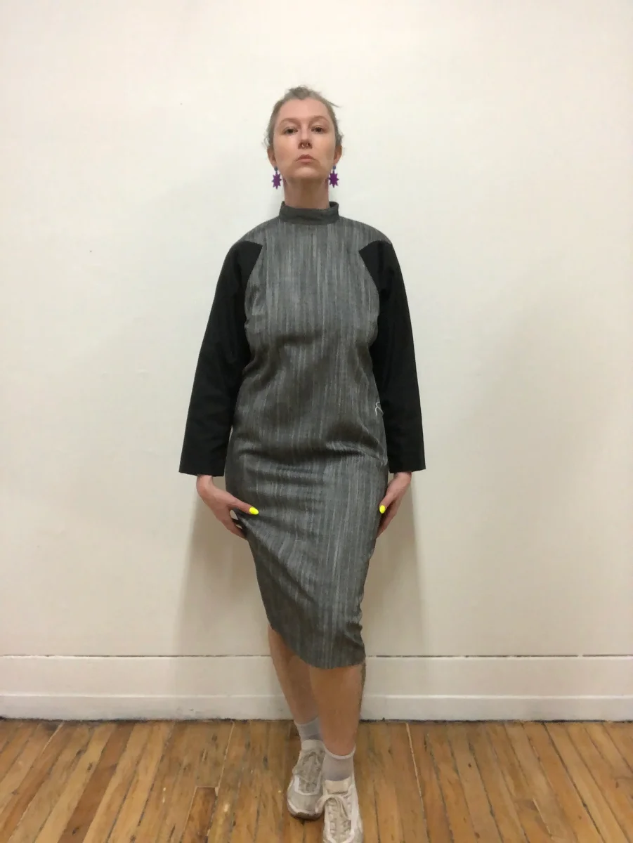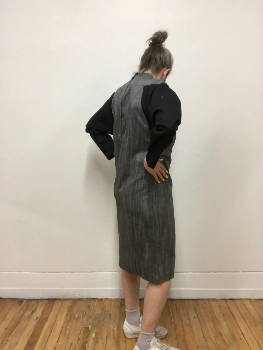 Robe à manche longue en coton gris chambray et noir. Col cheminé. Manche chauve-souris. Fermeture éclair au dos. En tissu épais. Parfaite robe d’automne. En parfait état vintage. Grandeur 11/12 (Fit M/L) Taille 40 po Épaules 17,5 po Poitrine 44 po Manche 21,5 po Longueur 43 po 65 % polyester / 35 % rayonne Fait […]