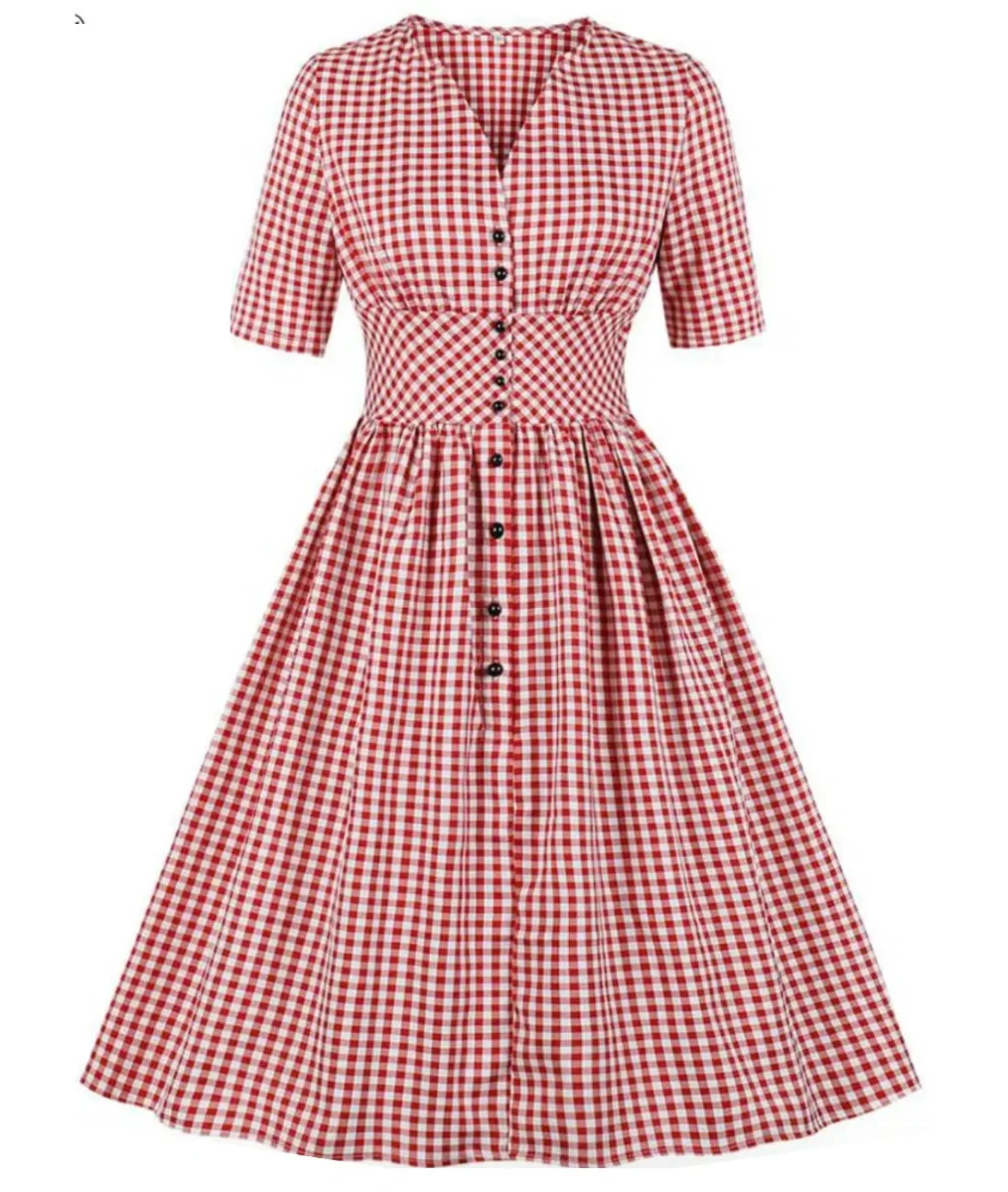 Élégante et intemporelle, cette pièce de mode rétro est un must-have pour toute fashionista qui souhaite ajouter une touche vintage à son look. Les carreaux fins et subtils de rouge et blanc confèrent à cette robe un charme rétro incontestable, tandis que les manches courtes ajoutent un air habillé pour conférer une silhouette flatteuse et cintrée. Conçue avec un souci du détail méticuleux, cette jolie robe vintage est fabriquée à partir de tissu polyester pour un confort optimal et une durabilité maximale.