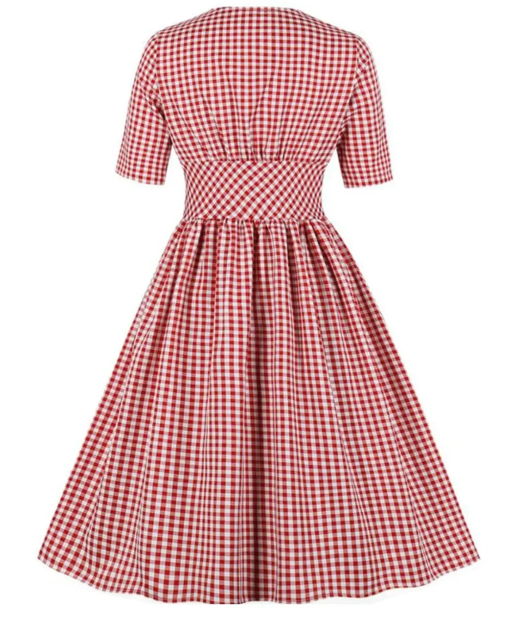 Plongez dans l’ambiance vintage des années 40 avec cette magnifique robe rouge et blanche à fins carreaux !