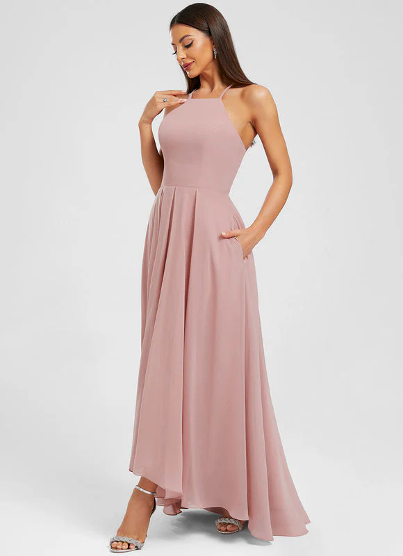 Robe Asymétrique Rose Poudré : L’Élégance Incarnée