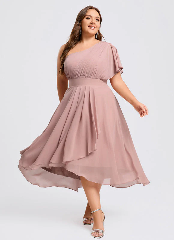 Confectionnée en mousseline légère avec des volants élégants et un décolleté asymétrique, cette robe offre une longueur midi flatteuse et un style cape sur une épaule. Disponible du XXS (32) au XXL (58) pour s’adapter à toutes les silhouettes.