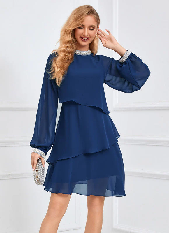 Robe Chic Volants Perles Élégante