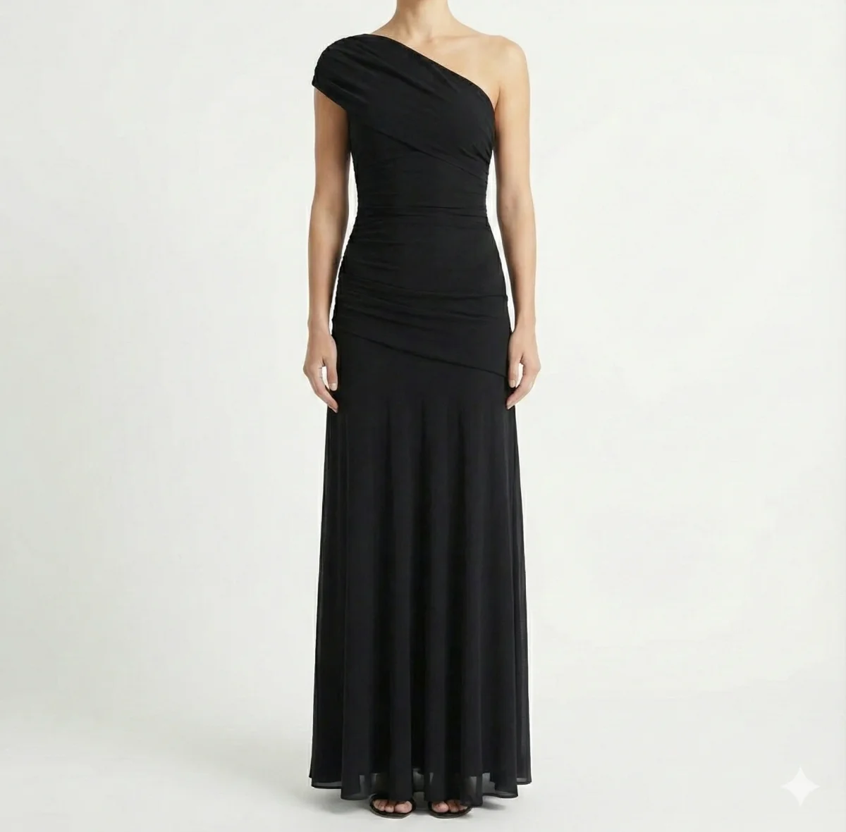 Sublimez votre silhouette avec notre robe cocktail noire asymétrique, parfaite pour tous vos événements élégants. Son design à une épaule dénudée apporte une touche de sensualité raffinée, tandis que la jupe évasée en mousseline fluide virevolte délicatement à chacun de vos mouvements. Sa longueur midi équilibre parfaitement l’audace du décolleté, créant un ensemble à la fois chic et sophistiqué qui met en valeur votre féminité.