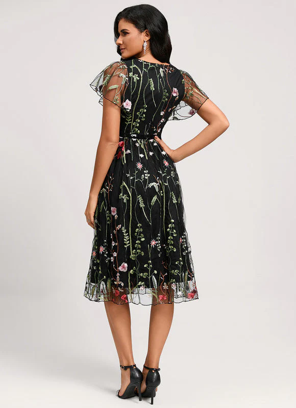 Robe Cocktail Florale En Tulle – L’élégance pour vos événements