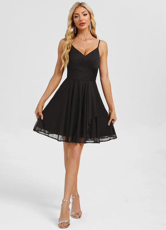 Découvrez notre sublime robe noire à bretelles fines qui sublimera votre silhouette en un instant. Avec son décolleté en V subtilement plongeant et sa coupe cache-cœur, cette robe courte fluide vous offre une allure à la fois sensuelle et sophistiquée. Le buste drapé met en valeur votre poitrine tandis que la jupe évasée en voile léger apporte un mouvement aérien à chacun de vos pas. Sa longueur mi-cuisse et son tissu mesh créent un effet de légèreté incomparable qui attire tous les regards.