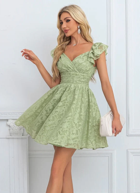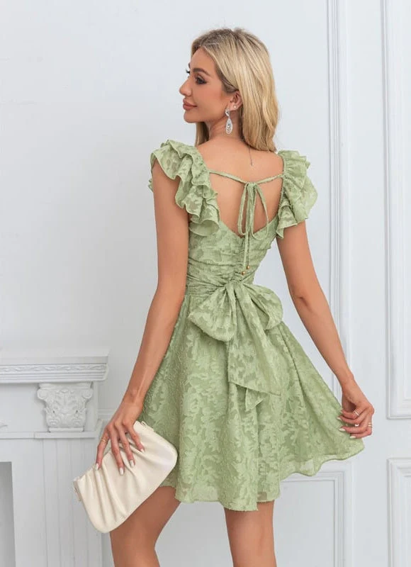 Chaque détail de cette Robe De Bal Ado a été pensé pour sublimer votre allure. Le charmant col V mettra en valeur votre décolleté avec délicatesse, tandis que les manches courtes à volants ajoutent une touche de romantisme et de mouvement à chaque geste. Un détail de nœud discret complète l’ensemble, soulignant la finesse du design. La taille est élégamment froncée, créant une silhouette cintrée qui s’élargit gracieusement en une jupe trapèze. Le tissu en mousseline, subtilement texturé, offre un look sophistiqué et une sensation agréable sur la peau, vous assurant un confort optimal tout au long de la soirée. Une fermeture éclair discrète au dos garantit un ajustement parfait.