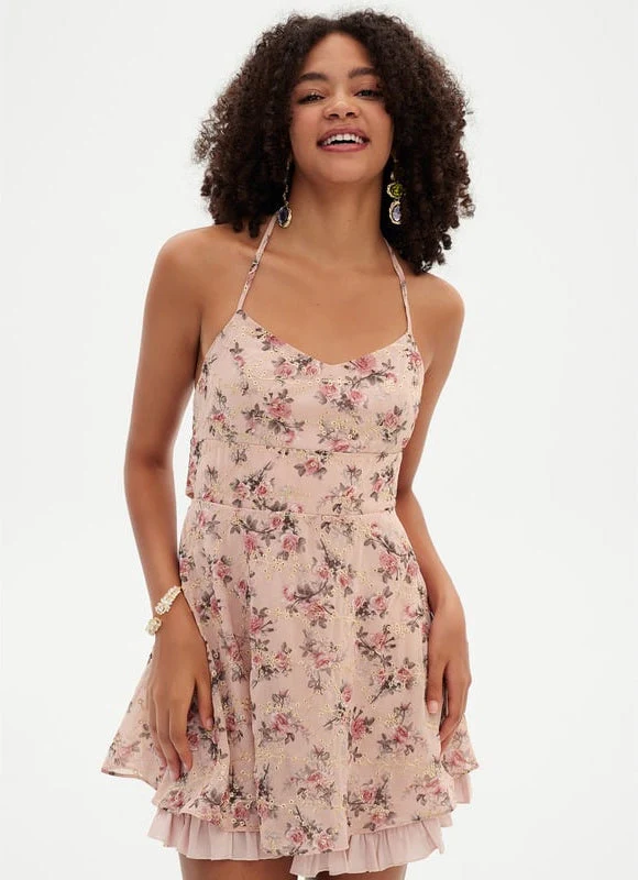 - Motifs floraux délicats avec des touches scintillantes discrètes pour un look romantique et glamour.