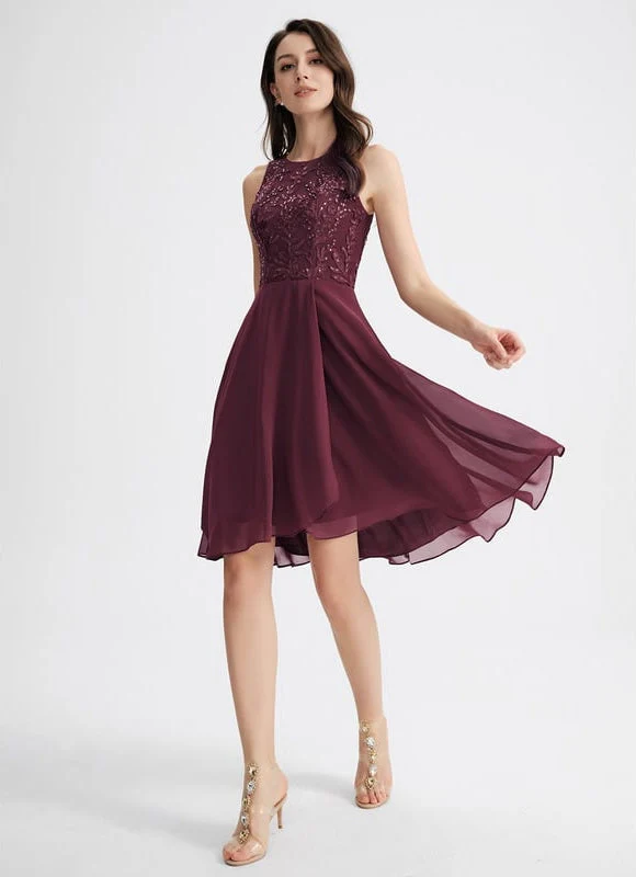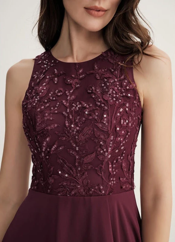 Le secret de l’allure captivante de cette robe réside dans ses détails méticuleusement choisis. Le haut de la robe est orné de paillettes délicates, créant un scintillement subtil et sophistiqué qui attire le regard sans jamais en faire trop. Sa coupe trapèze flatte toutes les silhouettes, épousant la taille avant de s’évaser gracieusement, tandis que sa longueur asymétrique apporte une touche de modernité et de légèreté. Confectionnée en mousseline fluide, la jupe de la robe danse avec vous, créant un effet « flottant » spectaculaire. Le col rond classique et le zip arrière discret complètent ce design élégant, assurant confort et maintien grâce à son soutien-gorge intégré. Vous n’aurez plus qu’à vous soucier de profiter de l’instant.