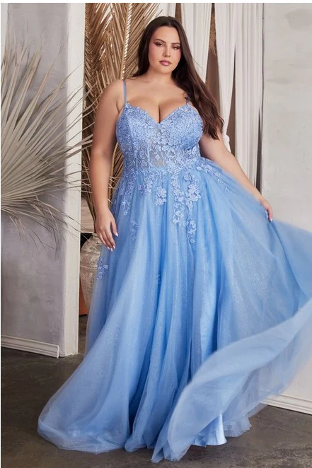 Ajoutez une touche de magie à votre soirée avec notre magnifique robe de bal avec bretelle délicate, taille plus. Le bustier en dentelle transparente crée un effet corset élégant, tandis que la jupe ample en tulle scintillant vous fera briller sur la piste de danse.