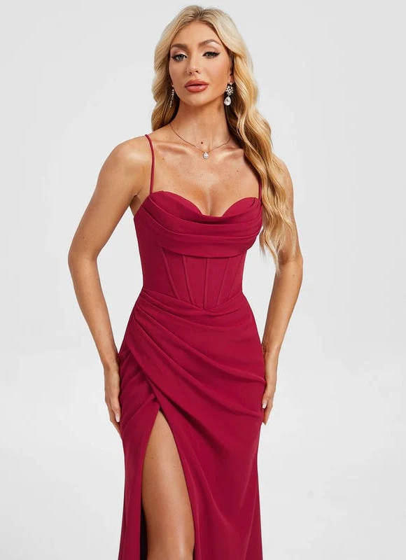 Faites de la Robe De Bal Crêpe Bordeaux la Star de Votre Prochaine Soirée