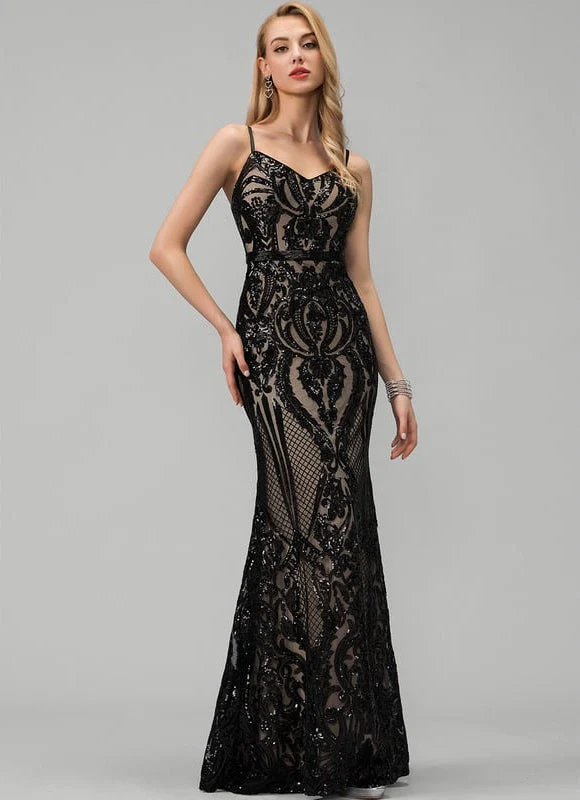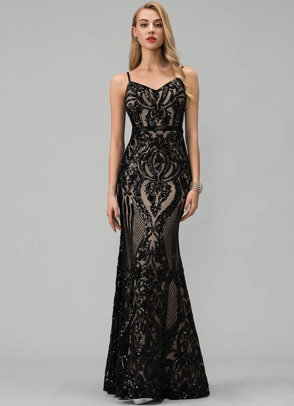 Conçue pour mettre en valeur chaque femme, cette robe sirène épouse délicatement vos courbes de la poitrine aux hanches avant de s’évaser gracieusement vers le sol, créant une allure majestueuse. Le décolleté en V, à la fois élégant et séduisant, met subtilement en valeur le buste, tandis que les fines bretelles ajoutent une touche de délicatesse et de raffinement. Chaque centimètre de cette pièce est orné de paillettes complexes, formant des motifs riches et sophistiqués qui scintillent avec une élégance rare. Grâce à sa doublure complète et son soutien-gorge intégré, vous bénéficiez d’un maintien parfait et d’un confort optimal, vous permettant de danser et de vous mouvoir avec aisance et confiance toute la nuit. La fermeture éclair discrète à l’arrière assure un ajustement impeccable et facile à enfiler.