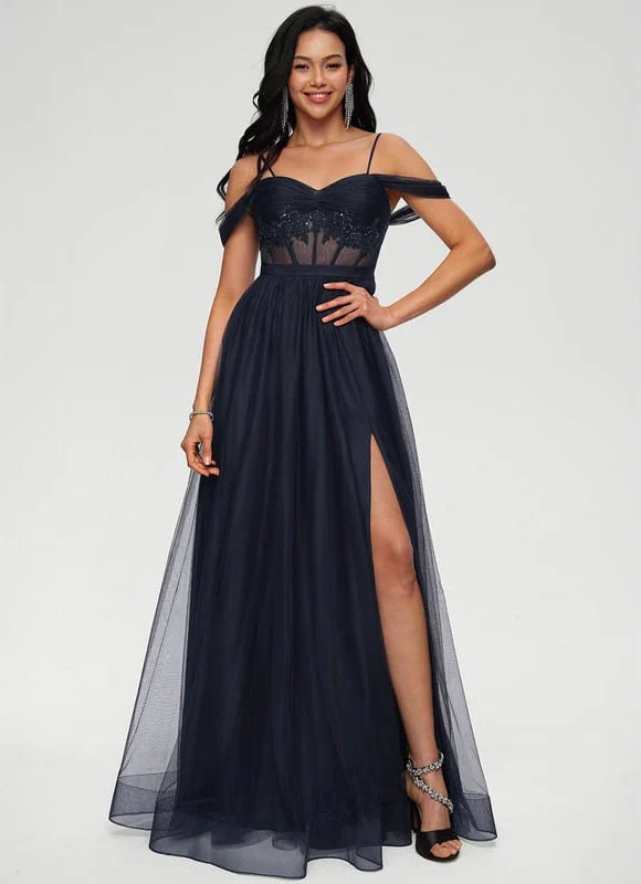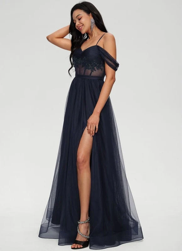 Chaque détail de cette Robe De Bal Tulle Évasée a été pensé pour vous mettre en valeur. Le col épaule dénudée met en lumière votre port de tête et vos épaules avec une élégance raffinée, tandis que les appliques de dentelle délicates et les paillettes scintillantes sur le buste ajoutent une touche de glamour discret qui capte la lumière. La fente audacieuse sur la jambe révèle subtilement votre silhouette, ajoutant une touche de modernité et de sensualité à cette robe longue classique. Conçue avec une doublure complète, un soutien-gorge intégré et des armatures de maintien, elle assure un confort et un maintien parfaits tout au long de votre événement, vous permettant de danser et de profiter sans aucune contrainte. Disponible dans une large gamme de tailles, du XXS au XXL, nous avons la taille parfaite pour que vous vous sentiez absolument magnifique.