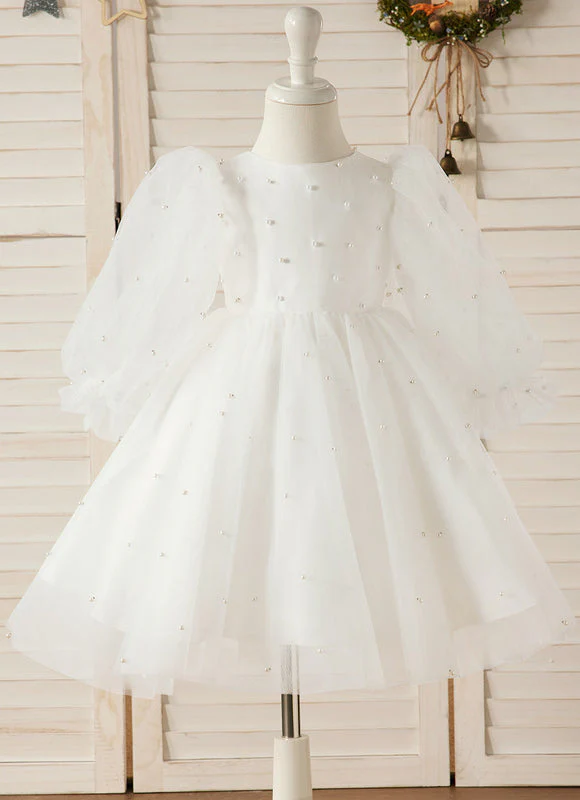 Cette magnifique robe de fête en tulle perlée incarne la délicatesse et le raffinement. Confectionnée dans un tulle aérien d’un blanc immaculé, elle se distingue par ses nombreuses perles nacrées qui scintillent délicatement à chaque mouvement. Sa coupe trapèze flatteuse épouse harmonieusement la silhouette tout en offrant une liberté de mouvement incomparable. Les manches longues bouffantes apportent une touche romantique et intemporelle, tandis que le col rond souligne l’élégance du décolleté. Cette robe midi se termine juste en dessous du genou, créant une longueur parfaite qui allonge la silhouette avec grâce. Sa doublure complète garantit un confort optimal et une opacité parfaite, vous permettant de vous sentir à l’aise tout au long de votre événement.