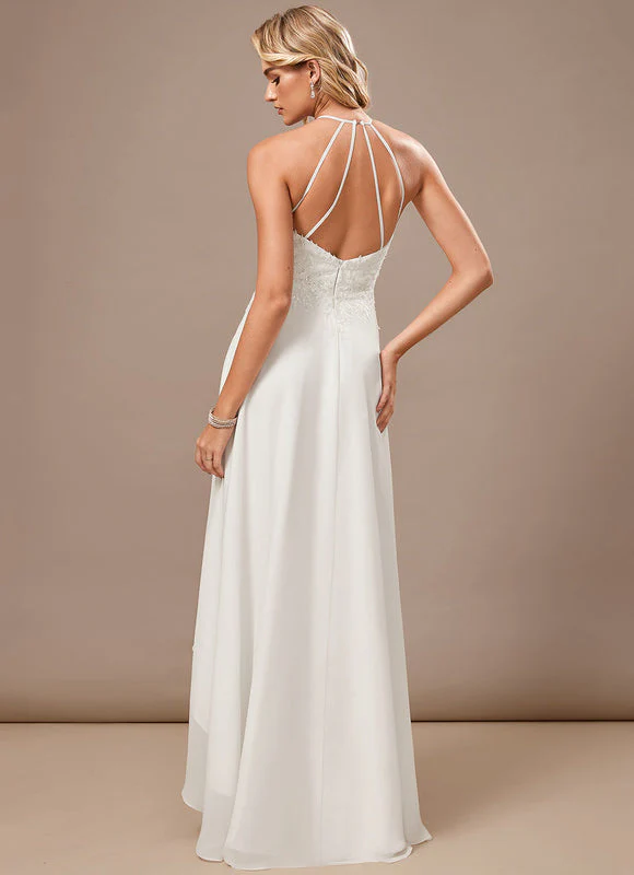 Cette robe de mariée asymétrique a été pensée pour vous offrir un confort optimal tout au long de votre journée spéciale. Sa coupe trapèze libère vos mouvements et vous permet de danser sans contrainte, tandis que la mousseline légère épouse délicatement vos formes sans les comprimer. Le système de fermeture par zip arrière facilite l’habillage, et le soutien-gorge intégré avec armatures de maintien vous assure un maintien parfait et une silhouette harmonieuse. La longueur asymétrique de cette robe crée un effet visuel saisissant qui vous distinguera des robes de mariée traditionnelles, tout en restant suffisamment élégante pour les cérémonies les plus solennelles. C’est la pièce idéale pour exprimer votre personnalité unique le jour de votre mariage.