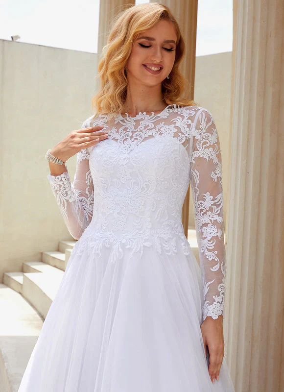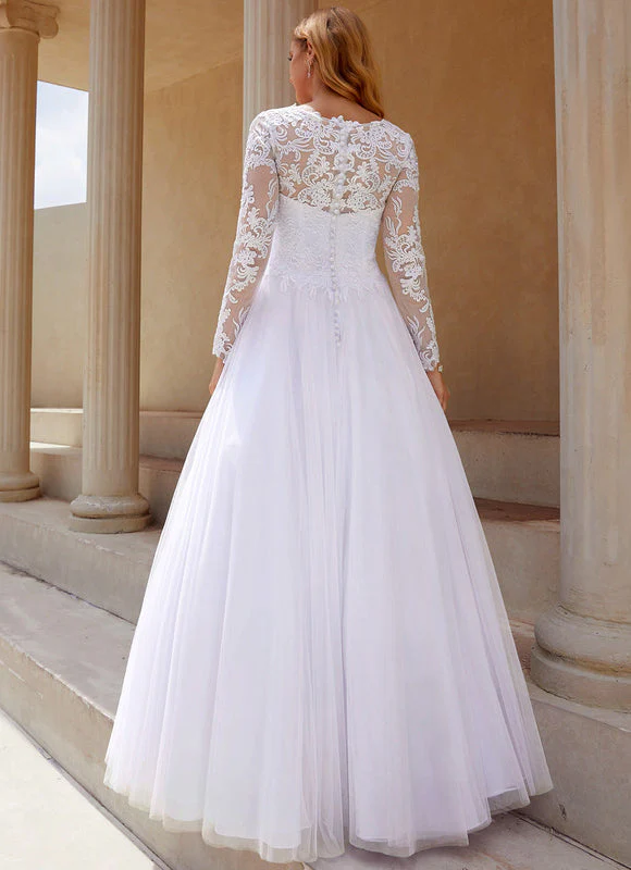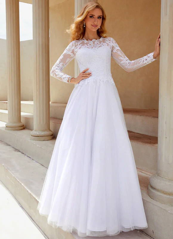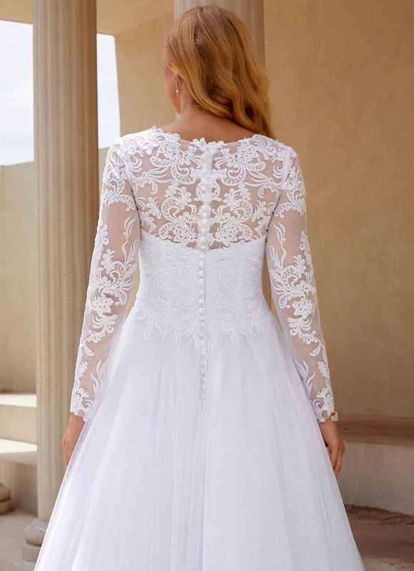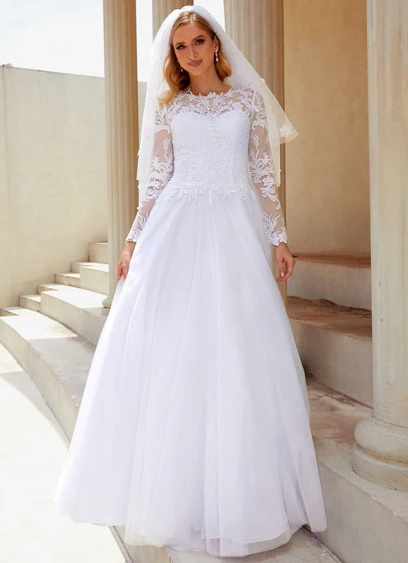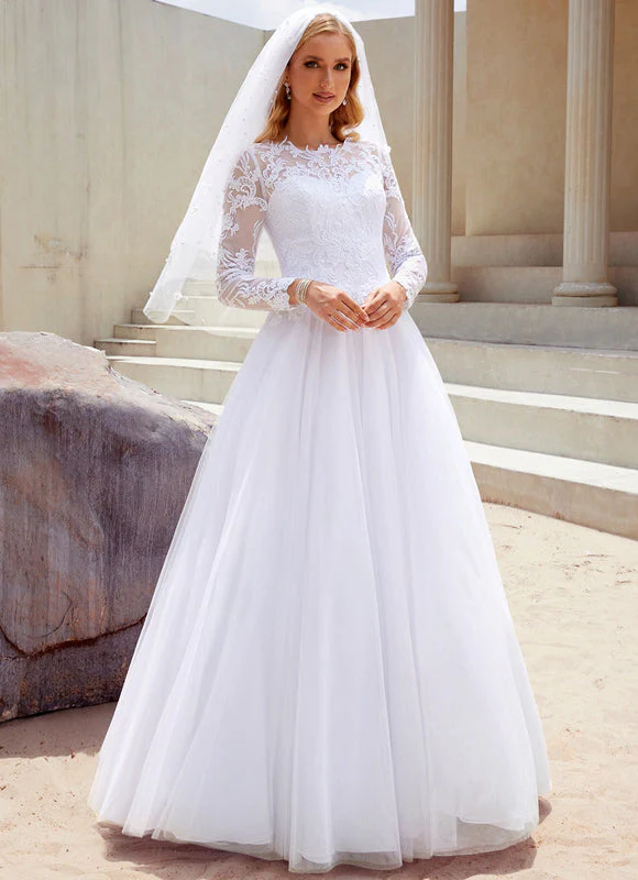 Craquez pour cette magnifique robe de mariée classique qui incarne la perfection du style traditionnel revisité avec modernité. Cette création exceptionnelle allie la délicatesse de la dentelle florale aux lignes épurées d’une coupe princesse, créant une silhouette féminine et raffinée qui vous mettra en valeur le jour J. La robe de mariée classique présente un décolleté rond élégant orné de dentelle transparente qui apporte une touche de sensualité subtile, tandis que les manches longues en dentelle offrent une couverture sophistiquée parfaite pour une cérémonie religieuse ou civile. Le bustier ajusté épouse harmonieusement vos courbes avant de s’évaser gracieusement en une jupe princesse volumineuse qui vous donnera cette allure de conte de fées dont vous avez toujours rêvé.