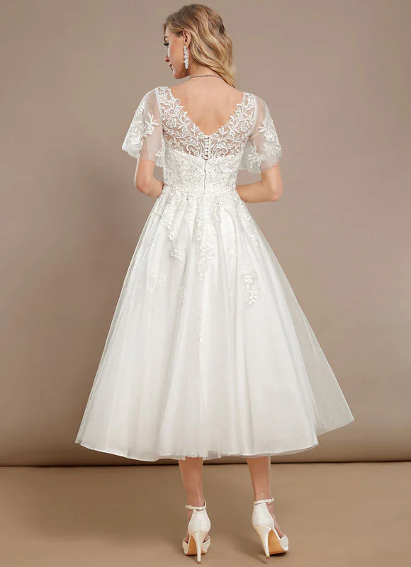 Design Raffiné de cette Robe de Mariée Courte en Dentelle