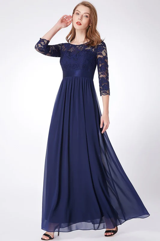 Robe de mère de mariés ou demoiselles d’honneur ou robe de bal avec bustier en dentelle et manches 3/4 et jupe en chiffon Robe style droite Ce modèle peut être disponible dans plus de grandeurs et de couleurs en boutique