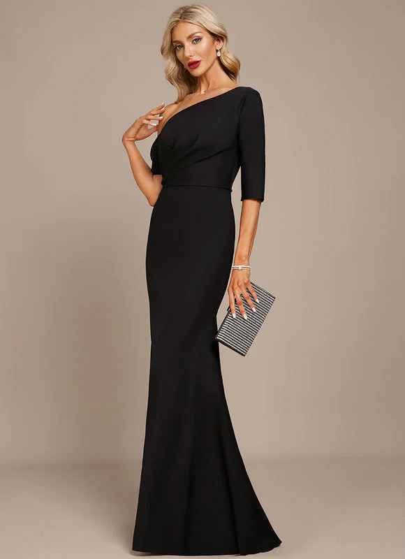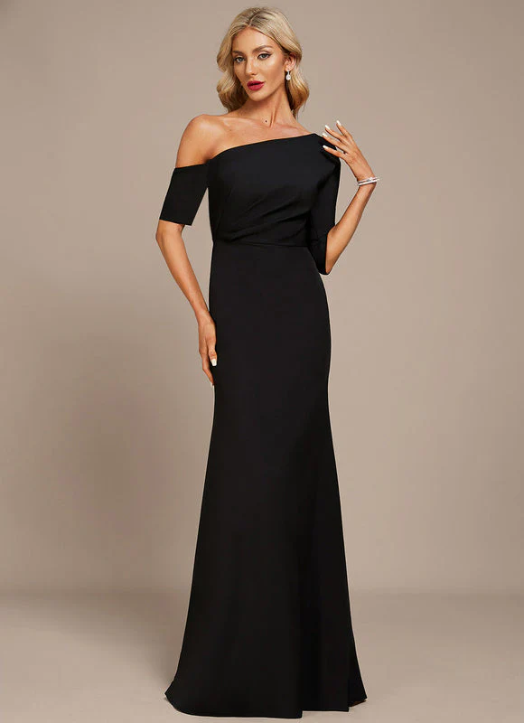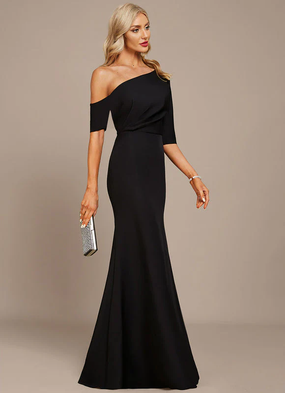 Cette robe fourreau noire incarne l’élégance à l’état pur avec son design asymétrique qui sublime votre silhouette. L’épaule dénudée et la coupe sirène créent une allure majestueuse pour attirer tous les regards. Le drapé subtil au niveau du buste et le tissu extensible de haute qualité vous garantissent un confort optimal tout en sculptant délicatement votre silhouette pour un rendu flatteur et sophistiqué.