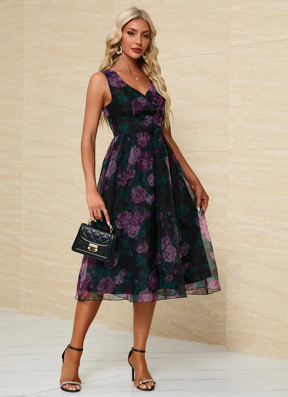 Cette robe est bien plus qu’un simple vêtement, c’est un investissement dans votre garde-robe. Sa polyvalence vous permet de la porter aussi bien lors d’un mariage champêtre que pour un dîner en ville ou une soirée cocktail. Le contraste saisissant entre le fond noir et les fleurs violettes attire subtilement l’attention. Associez-la à des talons hauts pour une allure sophistiquée, ou avec des sandales plates pour un look plus décontracté.