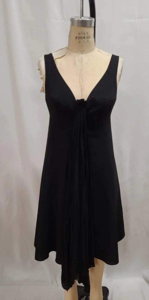 Robe courte, ligne A. Bretelles ajustables. Décolletée avec empiècement de tissu plissé au devant. Cintré sous la poitrine. Fermeture éclair au dos. De la designer québécoise MARIE SAINT-PIERRE. Gr. 4 (Fit S) Poitrine 32 po Taille 34 po Longueur 30 po 100 % polyester Fait au Canada État 10/10