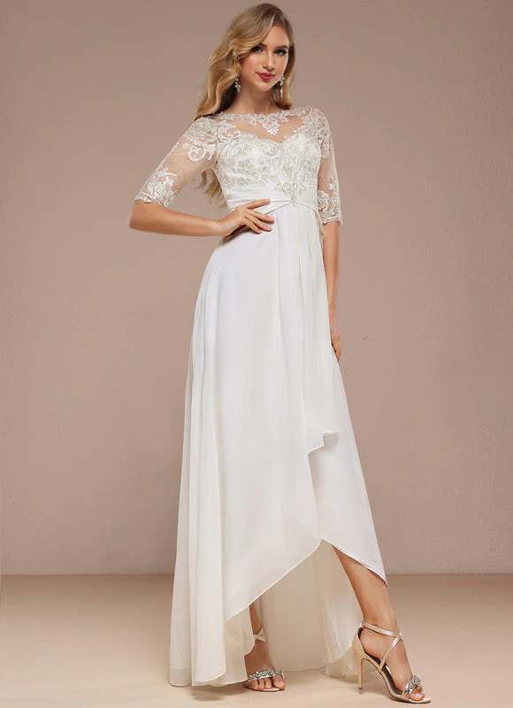Design Asymétrique : Une Robe Nuptiale Élégante À Volants Unique