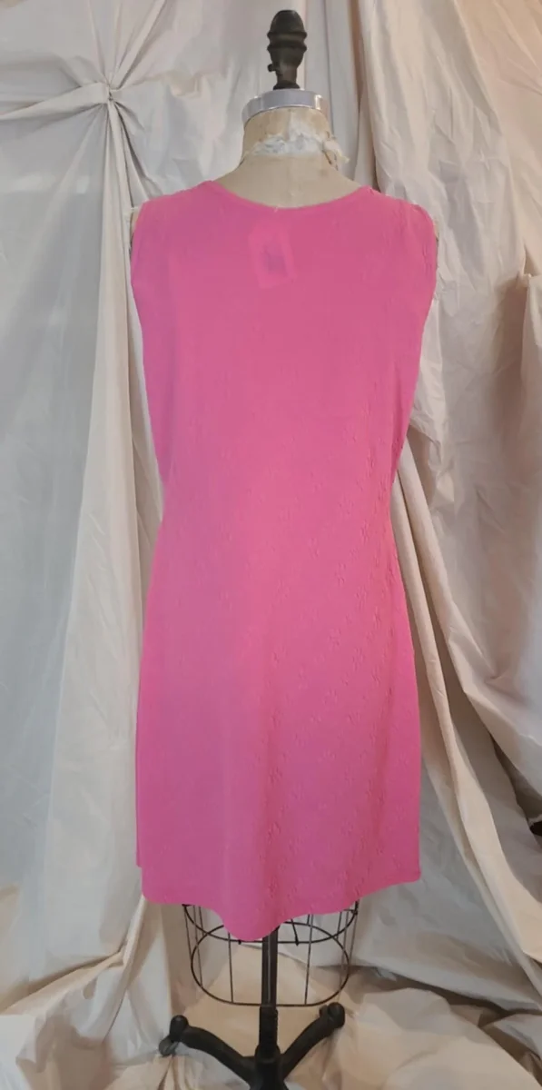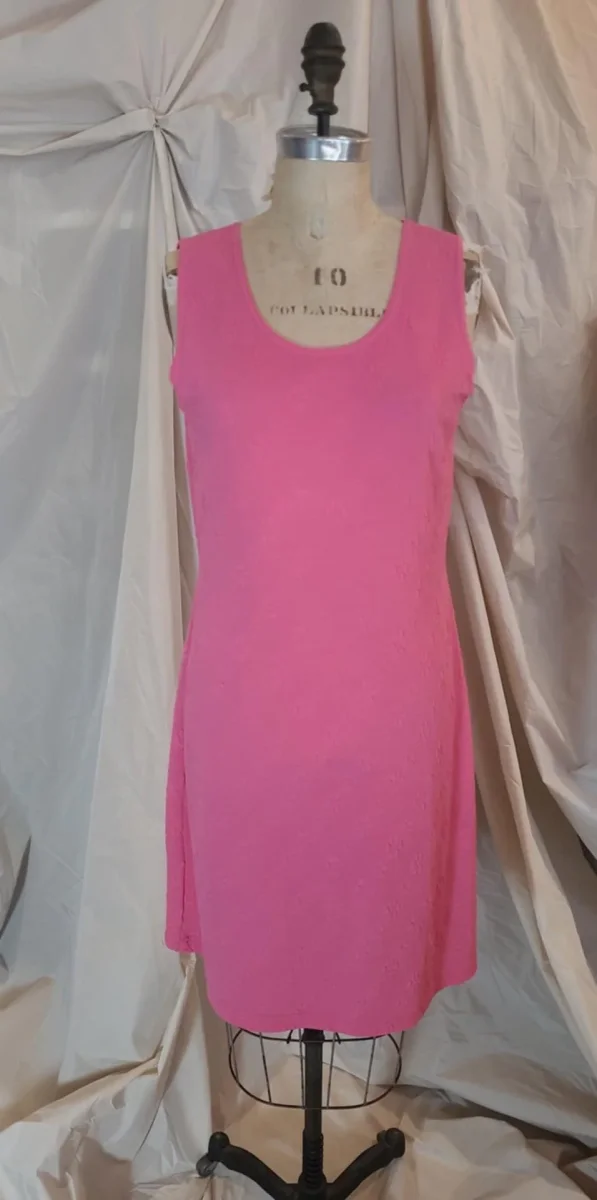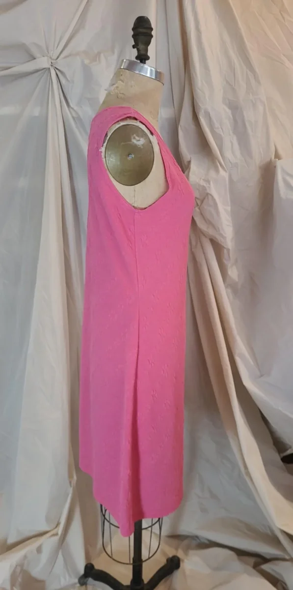 Rose fluo en Spandex avec fleurs embossées. Vintage. Poitrine 37 po Taille 33po Hanches 40 po Longueur 38 po no tag État vintage 9/10
